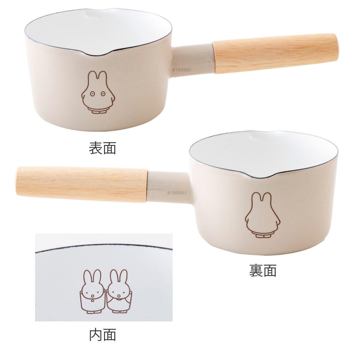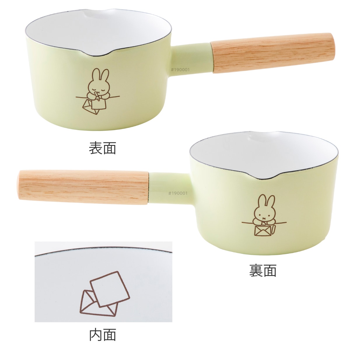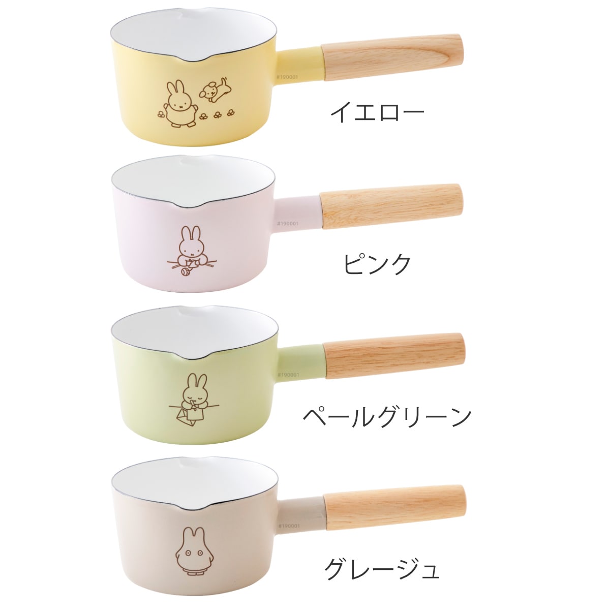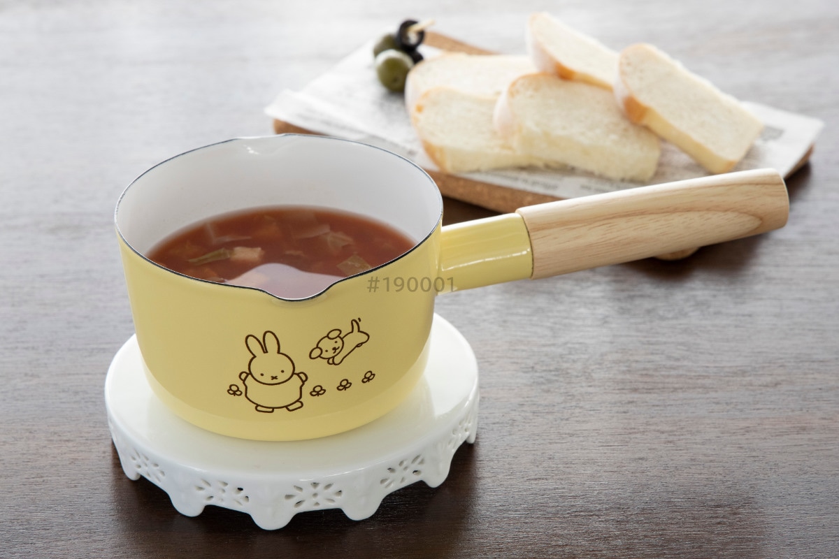 本体両面と内面の絵柄を合わせて、ストーリー性のあるミッフィーをデザインしたミルクパンです。4種類4色の明るくかわいいパステルシリーズです。