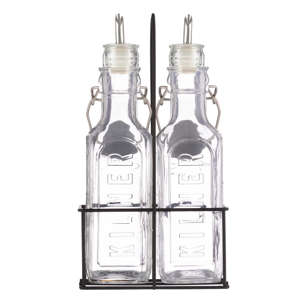 Set Of 2 Oil Bottles & Metal Rack 0.3L