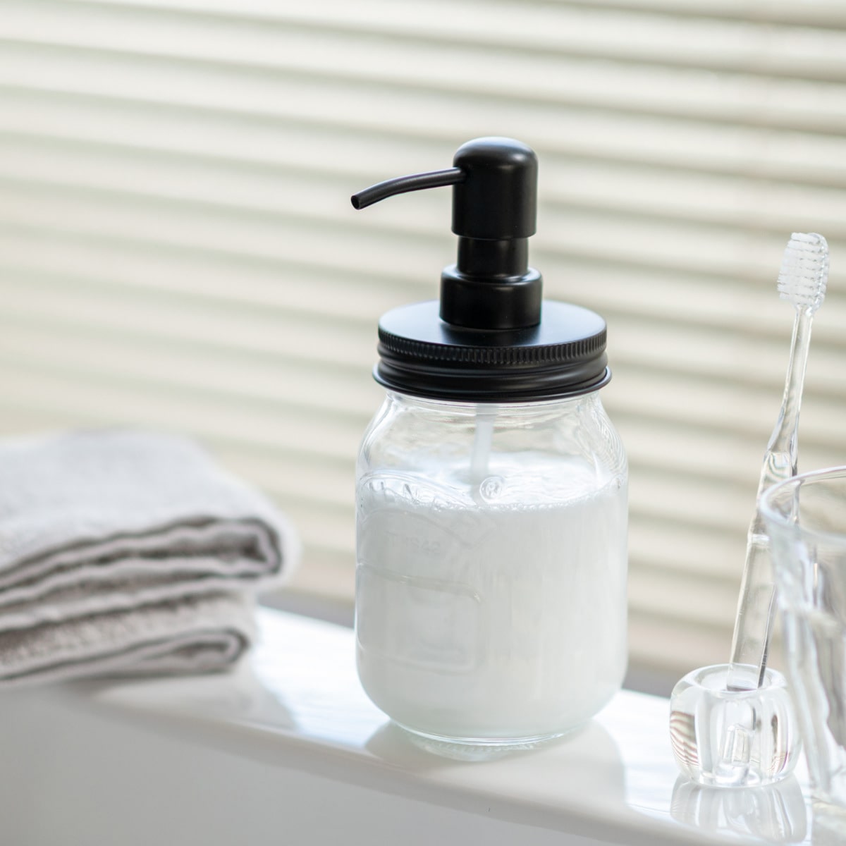 ガラスの透明感は、どんなインテリアにも合わせやすく、様々なシーンで美しく映えます。出したままでも邪魔にならない程よいサイズ感なので、シンク周りや洗面空間での使用がおすすめです。