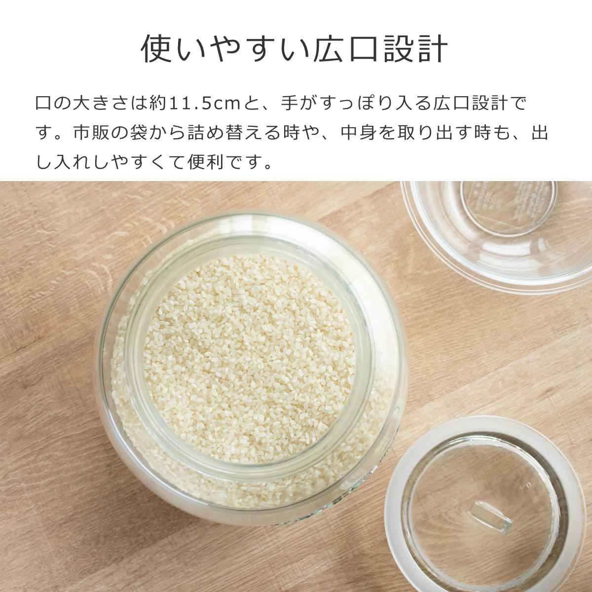 口の大きさは約11.5cmと、手がすっぽり入る広口設計です。市販の袋から詰め替える時や、中身を取り出す時も、出し入れしやすくて便利です。