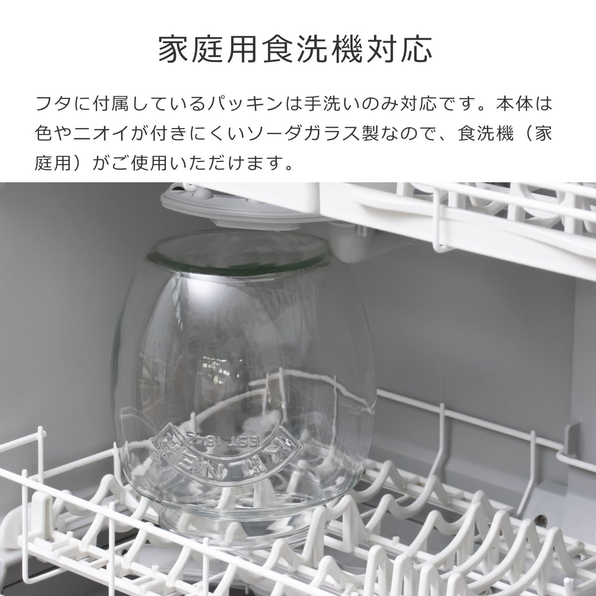 色やニオイが付きにくいソーダガラス製なので、香りの強い食品を入れてもニオイ移りの心配がありません。フタに付属しているパッキンは手洗いのみ対応ですが、本体は食洗機(家庭用)がご使用いただけます。