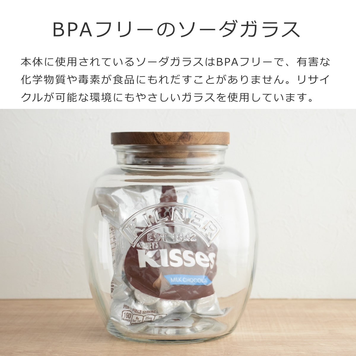 | 材質 | 本体:ソーダガラス フタ:天然木(アカシア) パッキン:シリコーンゴム BPAフリー |