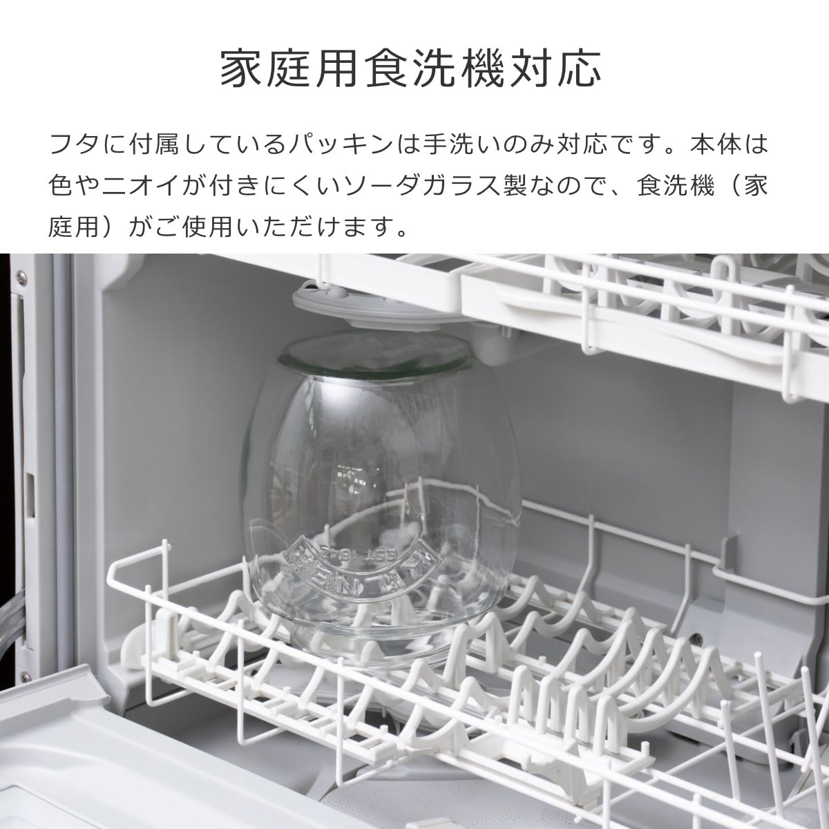 色やニオイが付きにくいソーダガラス製なので、香りの強い食品を入れてもニオイ移りの心配がありません。フタは手洗いのみ対応ですが、本体は食洗機(家庭用)がご使用いただけます。