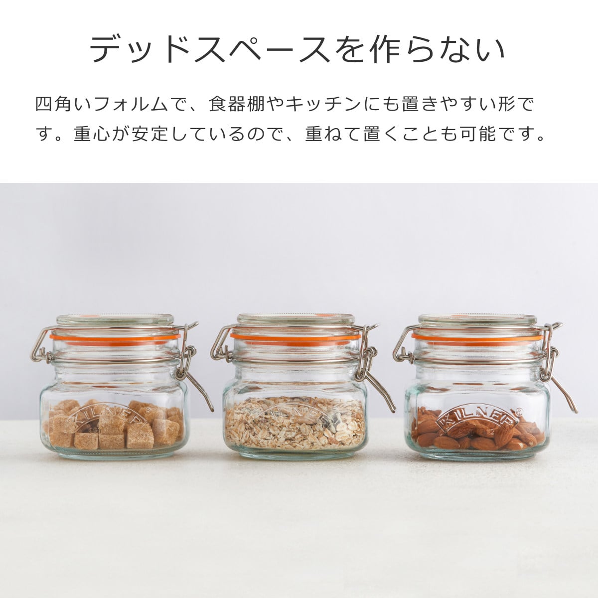 KILNERの保存瓶は、食材や用途に合わせて選べる豊富なサイズ展開です。単体での使用はもちろん、種類別で複数使いすれば、キッチンが整って統一した空間が生まれます。