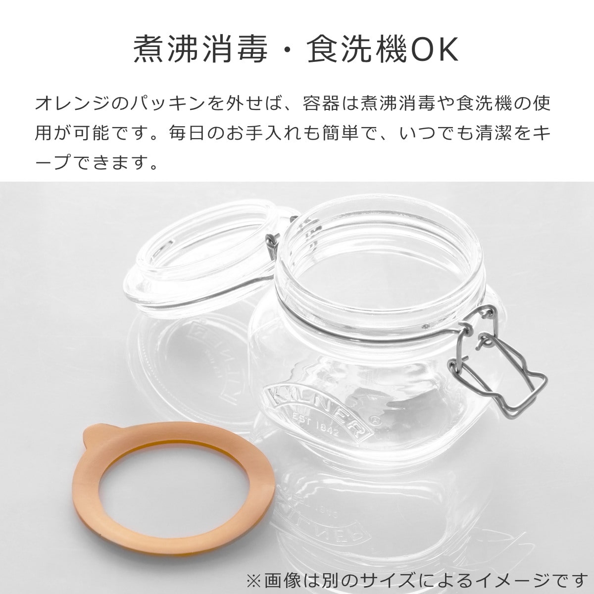 オレンジのパッキンを外せば、容器は煮沸消毒や食洗機の使用が可能です。パッキンはそのまま丸洗いできるので、衛生面も安心です。