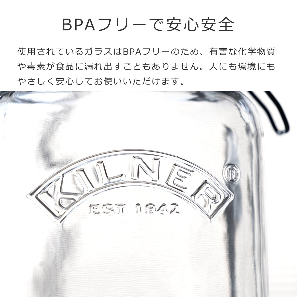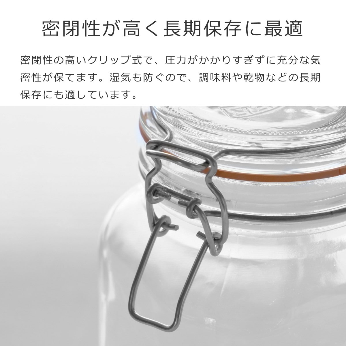 | 材質 | 本体:ソーダガラス パッキン:天然ゴム クリップ:ステンレススチール(クロームメッキ加工) BPAフリー |