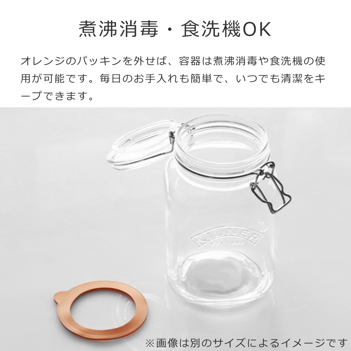 オレンジのパッキンを外せば、容器は煮沸消毒や食洗機の使用が可能です。パッキンはそのまま丸洗いできるので、衛生面も安心です。