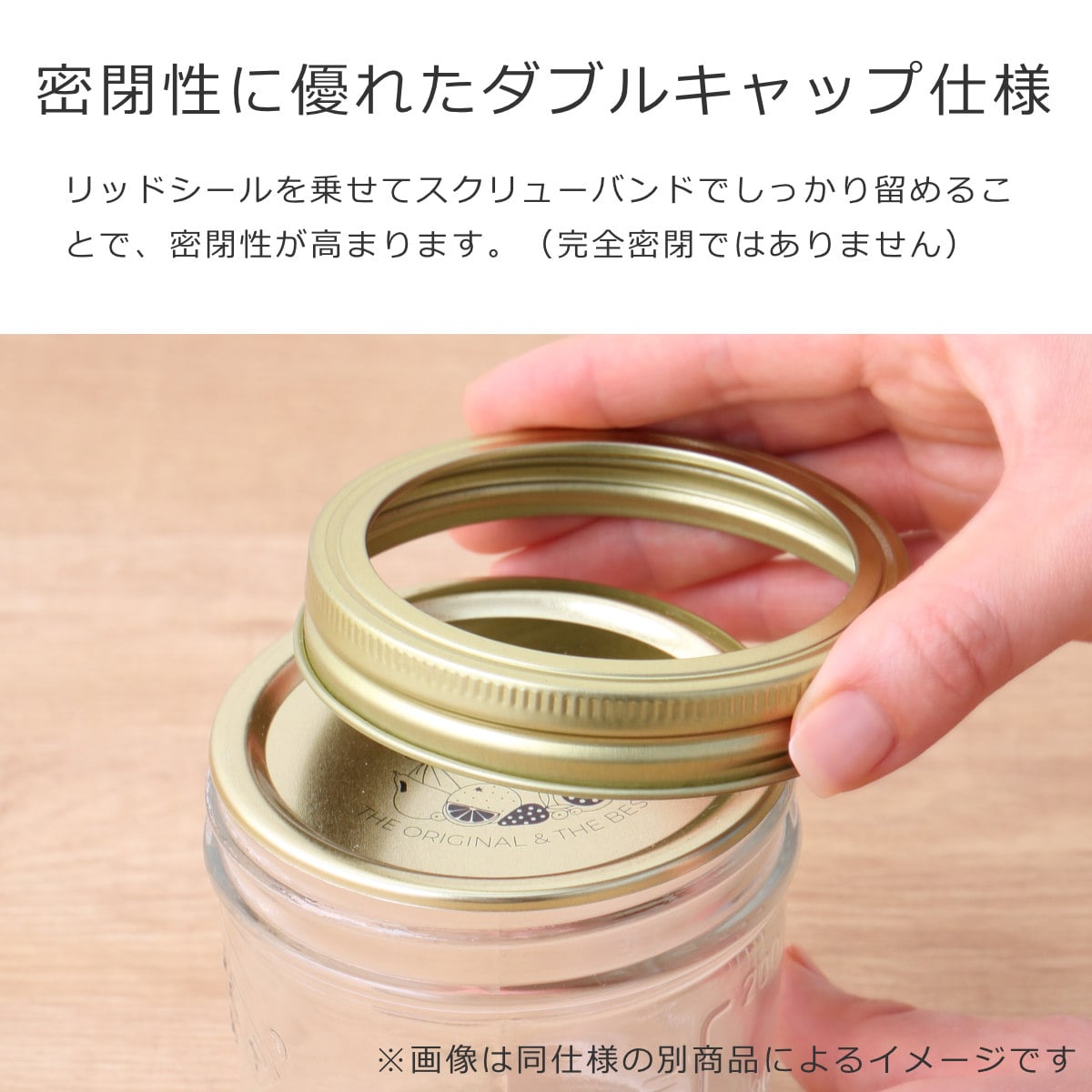 フタはリッドシールとスクリューバンドの2つに分かれたダブルキャップ仕様です。リッドシールを乗せてスクリューバンドでしっかり留めることで、密閉性が高まります。(完全密閉ではありません)