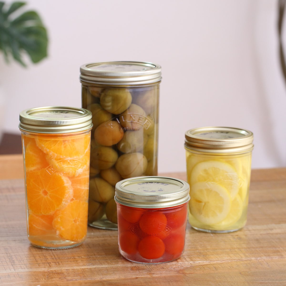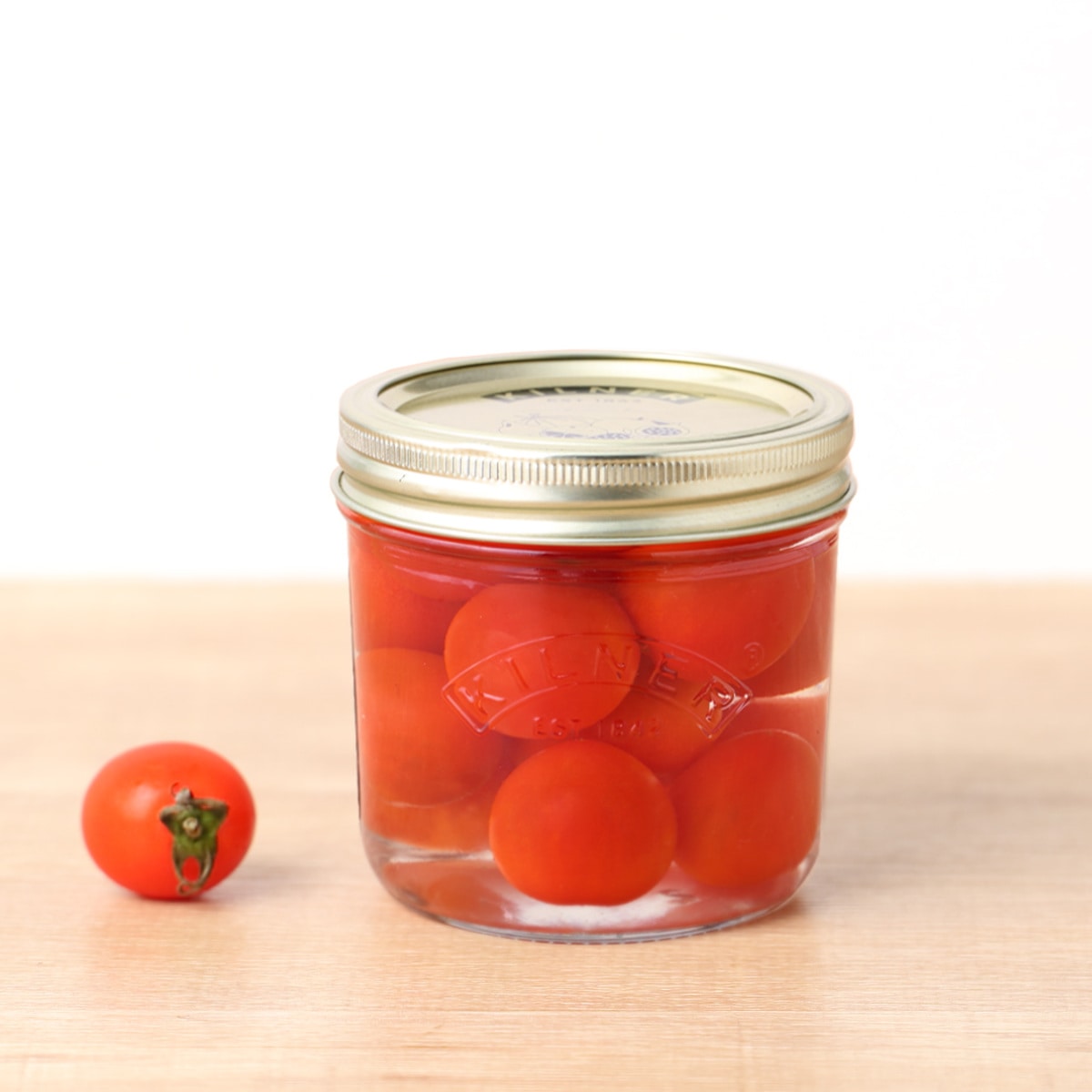 透明度が高く、煮沸消毒も可能なソーダガラス製の保存瓶です。色やにおい移りがしにくく、果物や野菜を新鮮な状態のまま保存できるので、果実酒やピクルスなど長期保存する食材にも適しています。