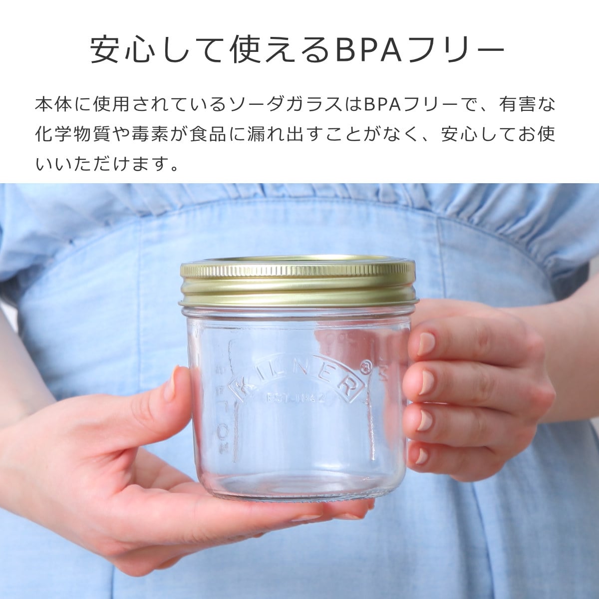 | 材質 | 本体:ソーダガラス フタ:鉄(表面スズメッキ加工) パッキン:PVC BPAフリー |