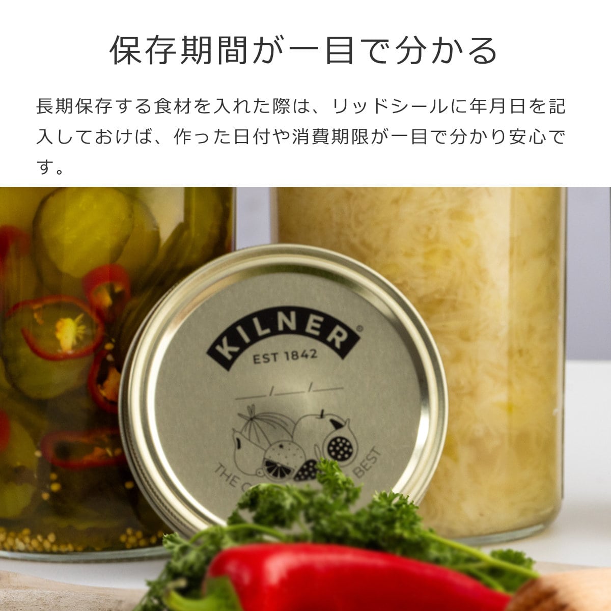 長期保存する食材を入れた際は、リッドシールに年月日を記入しておけば、作った日付や消費期限が一目で分かるので便利です。