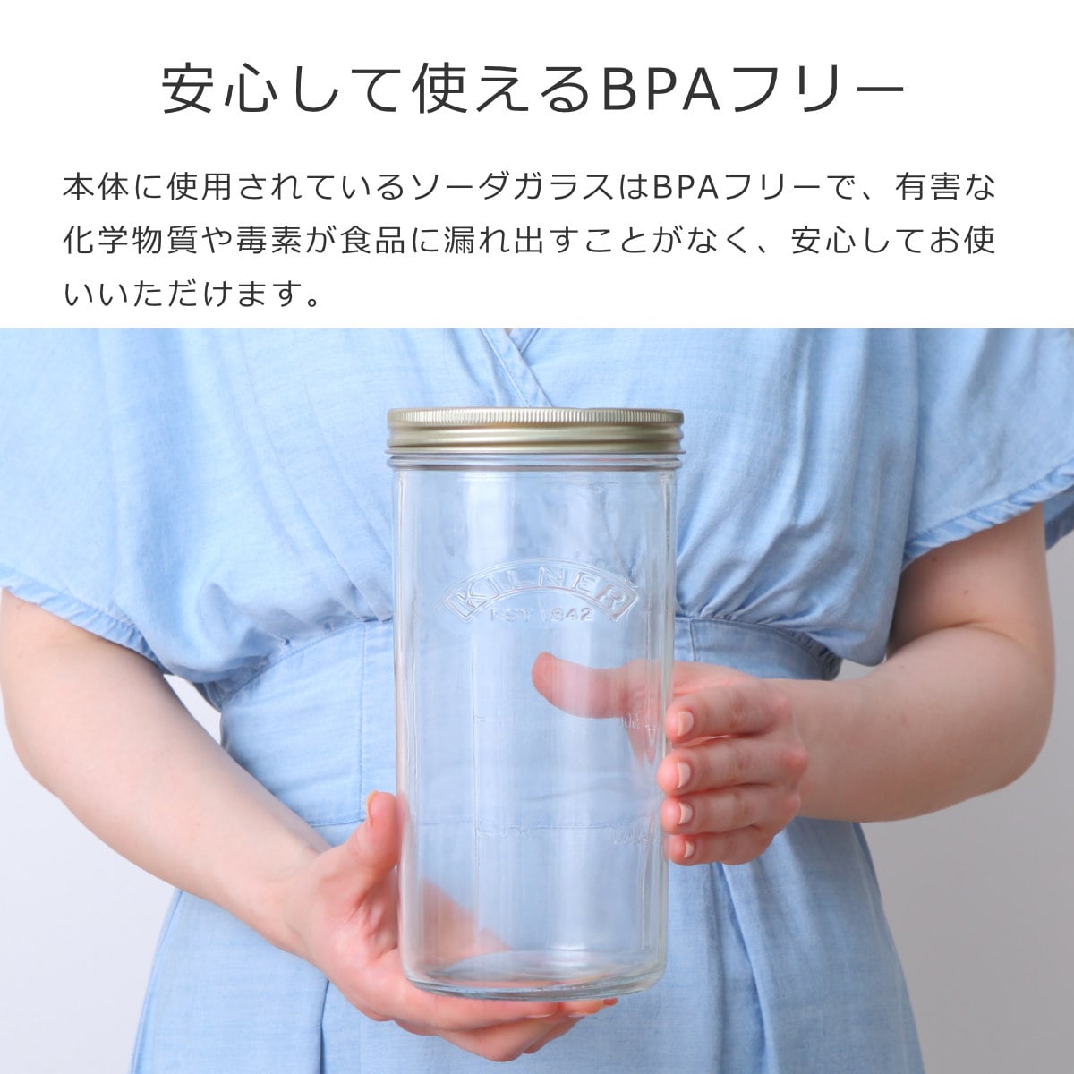 本体に使用されているソーダガラスはBPAフリーで、有害な化学物質や毒素が食品に漏れ出すこともありません。また、割れてしまっても再利用・リサイクルが可能で、環境にもやさしいガラスです。