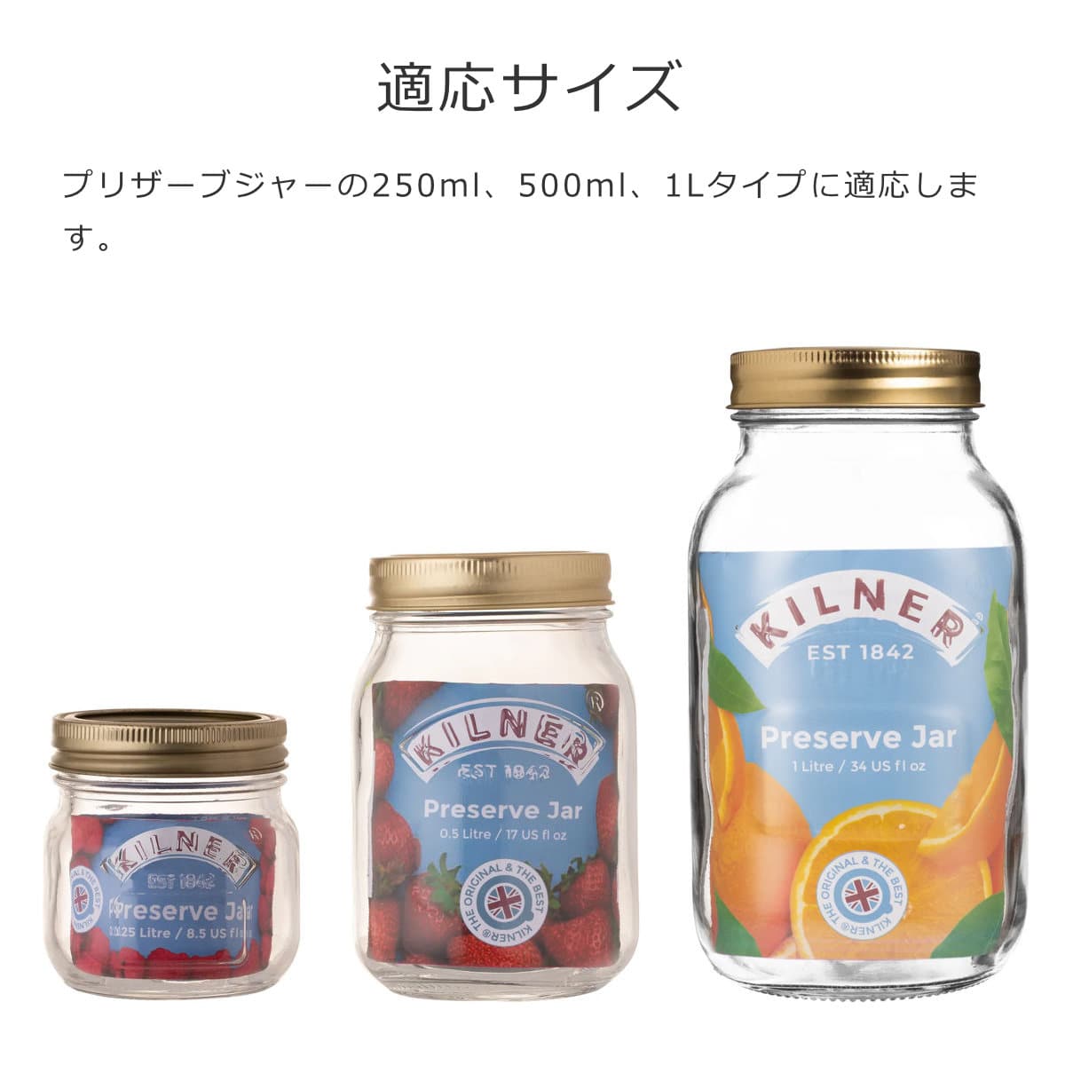 | 対応サイズ | PRESERVE JAR:250ml、500ml、1L |