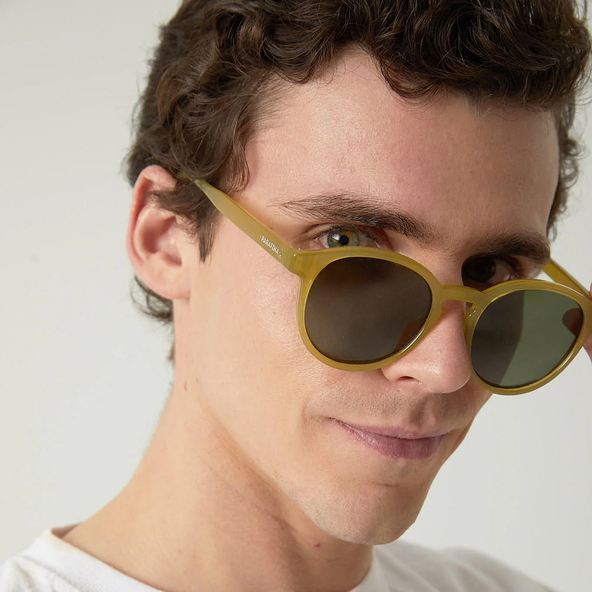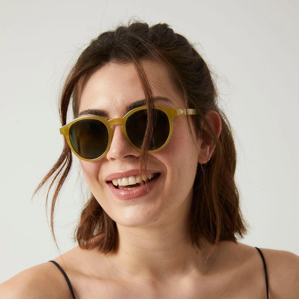 フレームにリサイクルされたPET(ポリエチレンテレフタラート)を使用した環境に優しいサングラスです。PETは主に、飲料や繊維容器に使用されることが多く、耐水性に優れています。透明性がある素材を活かした非常に軽量なフレームです。