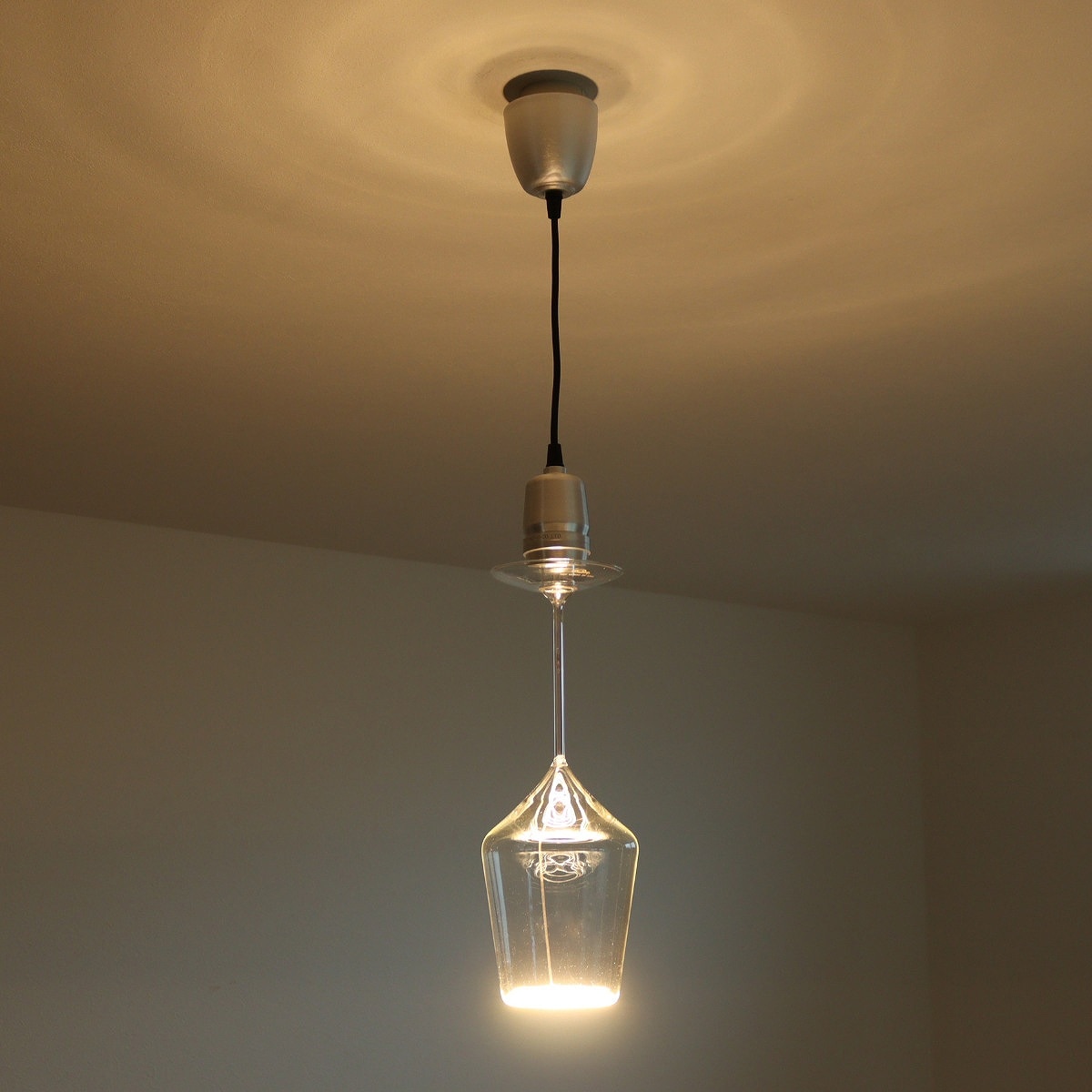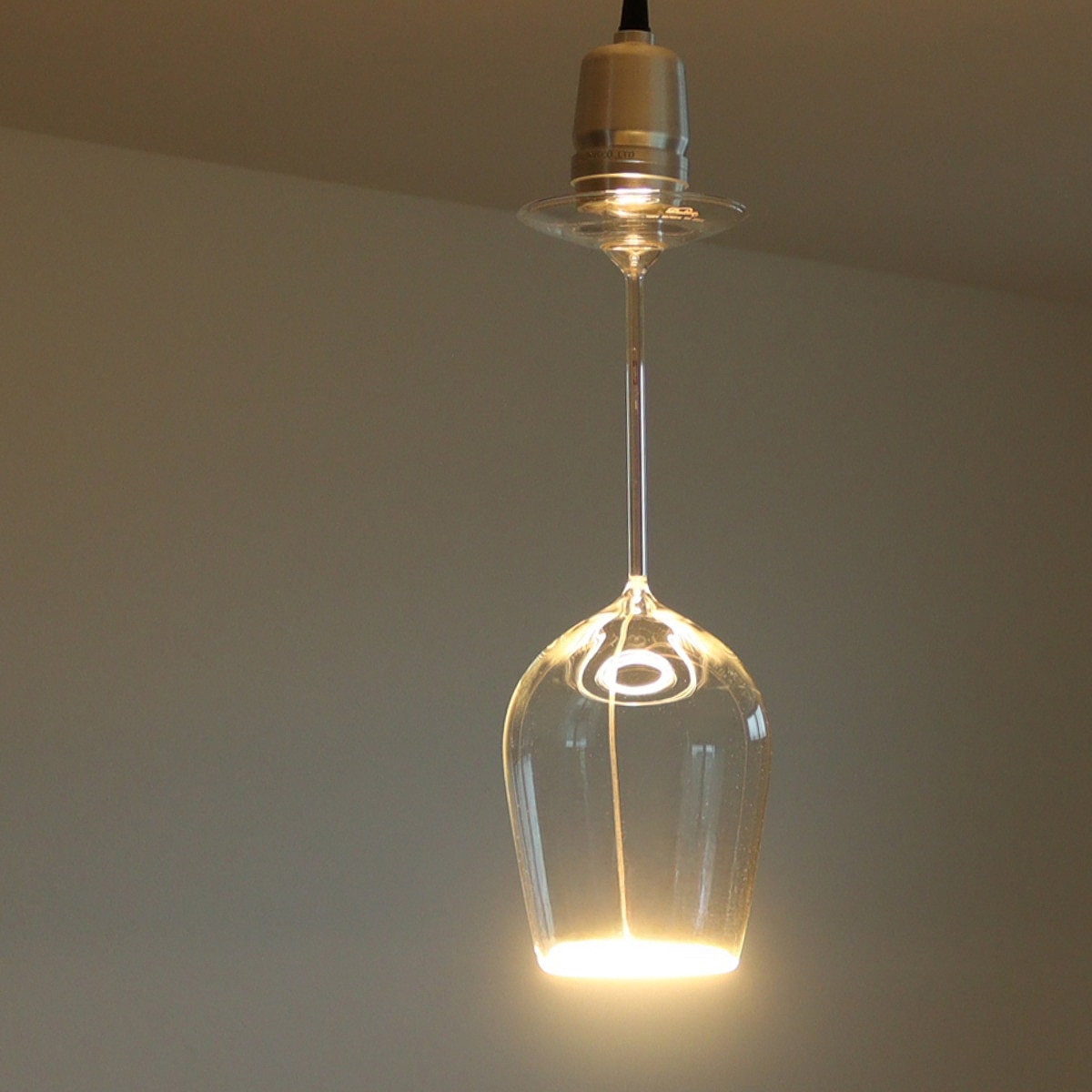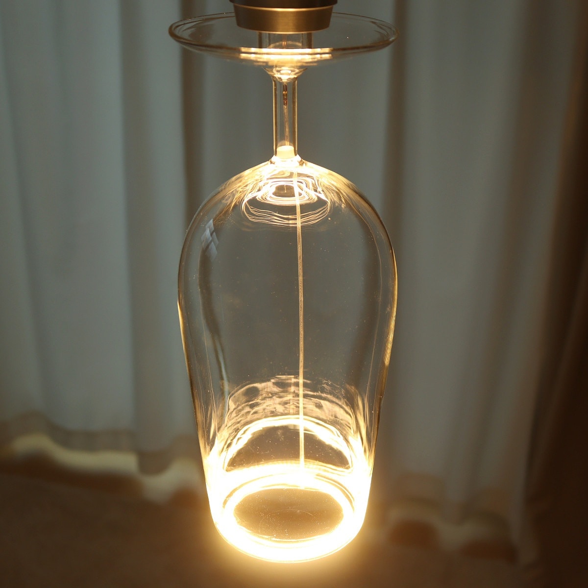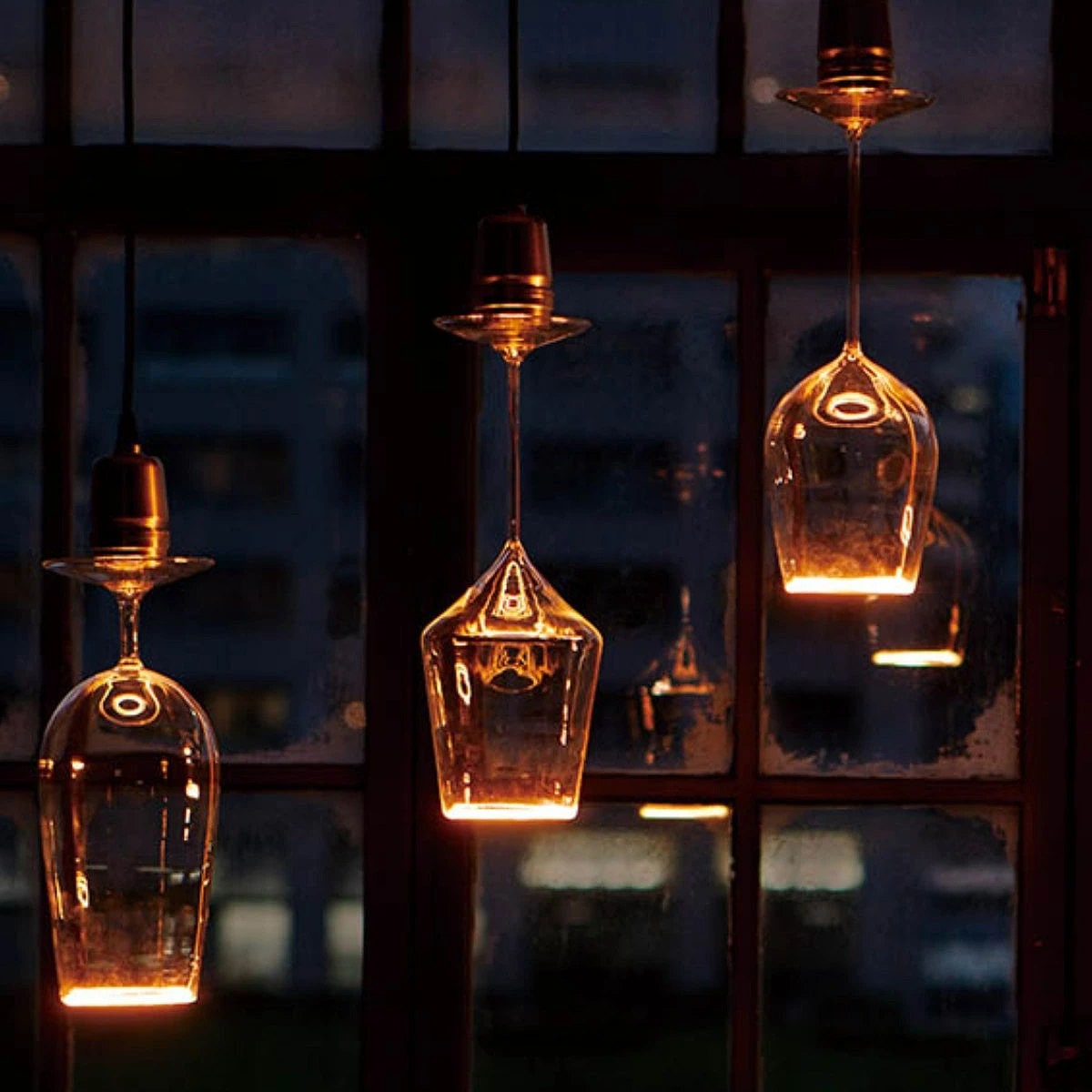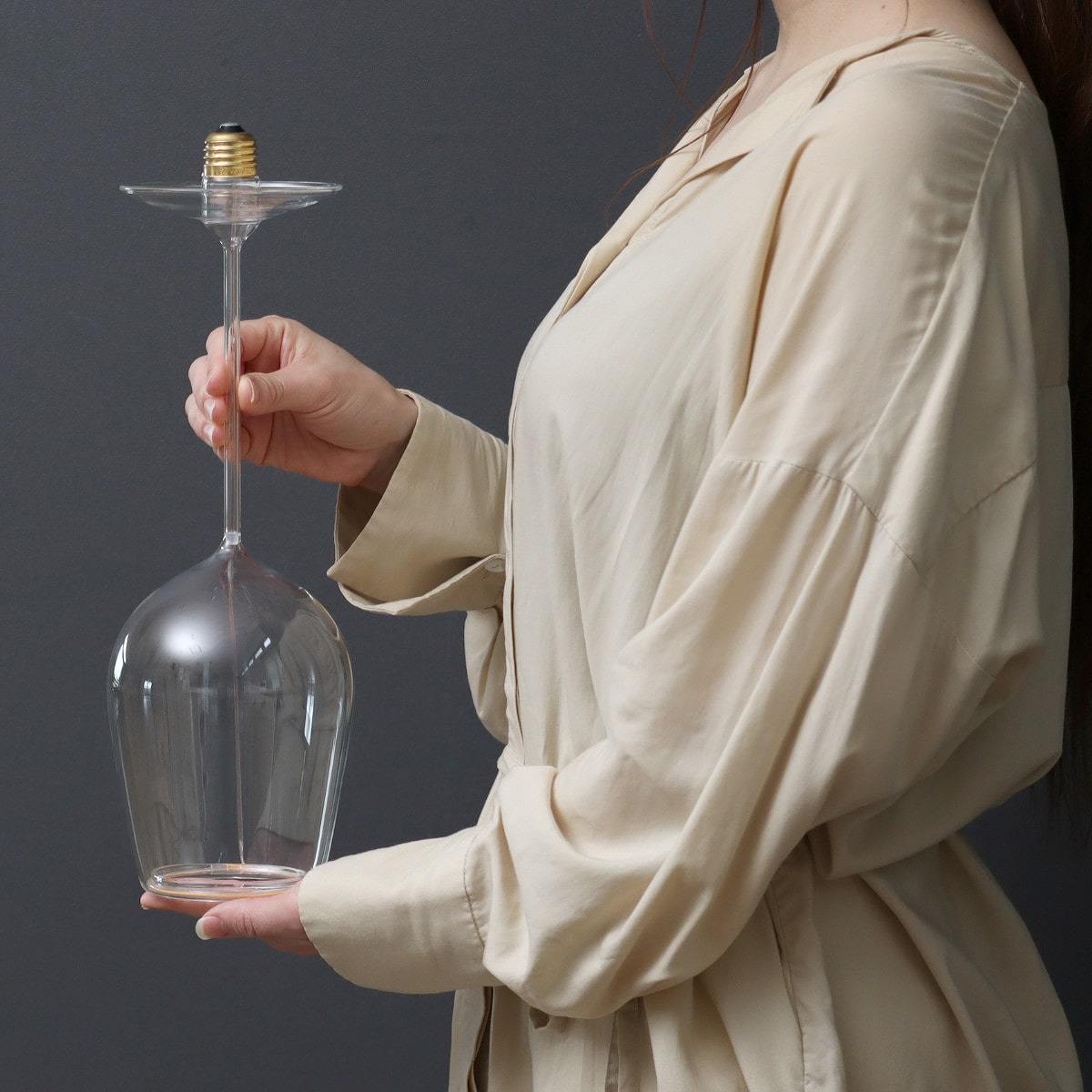 耐熱ガラス製のグラス型LEDライトです。電線が飲み口に沿って巻かれており、明かりを灯すとグラス全体のシルエットが浮かび上がって幻想的な雰囲気に。アクセントライトとしてお部屋の一角やカウンターに吊るせば、お店のようなおしゃれ空間を作ることができます。