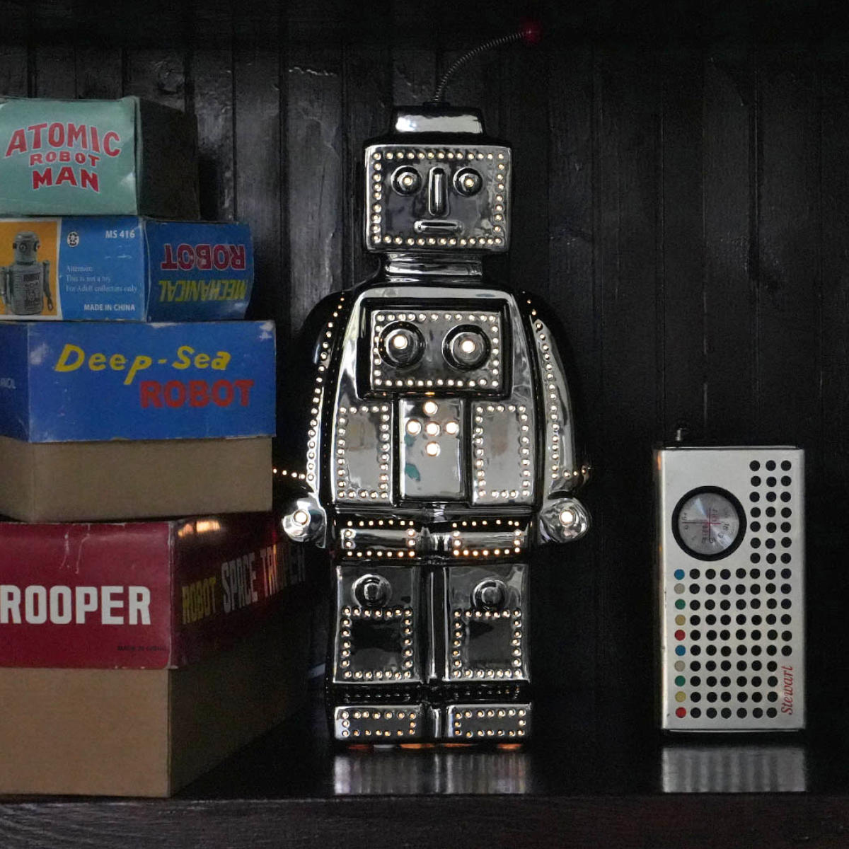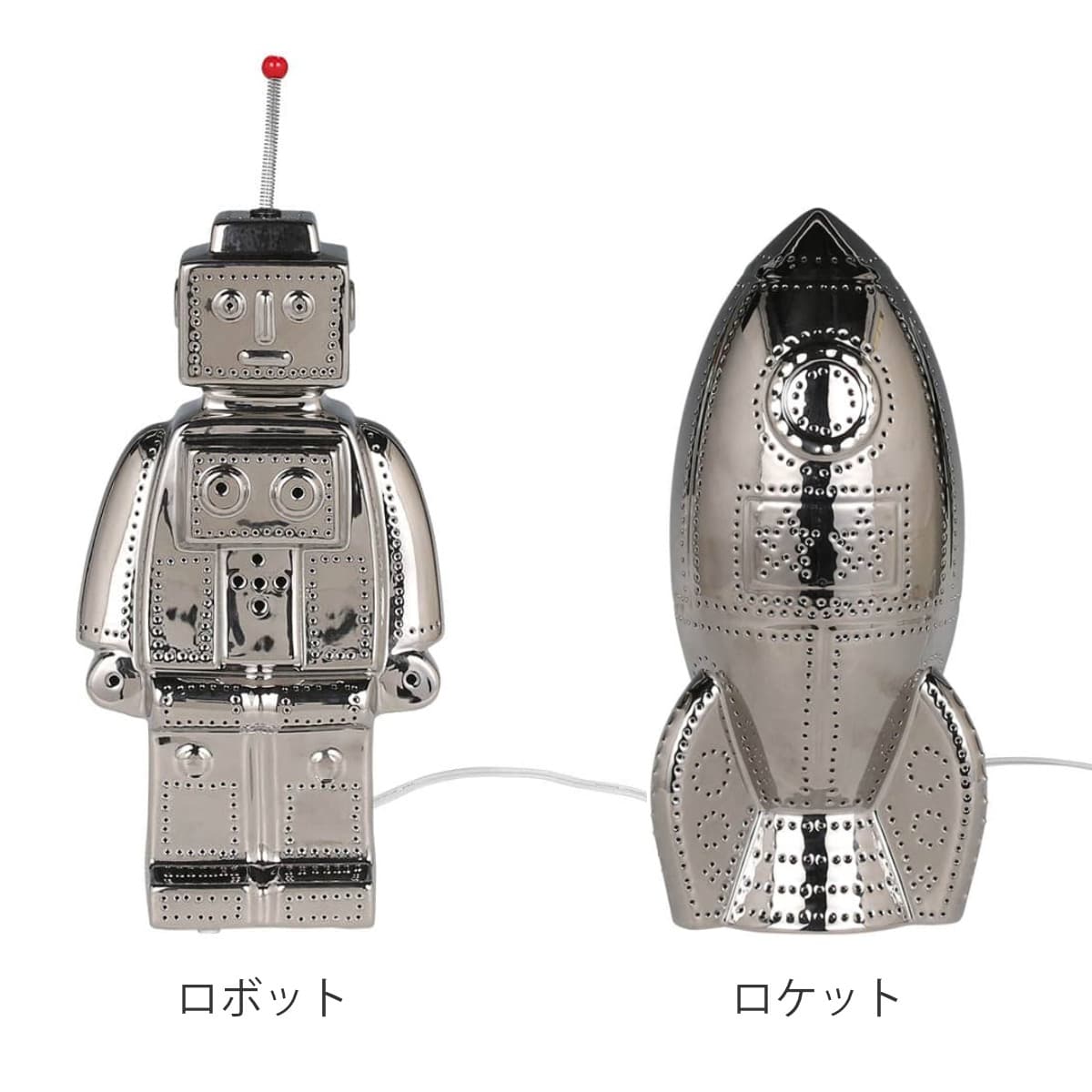 ロケットにロボット。子供の頃のおもちゃをモチーフにしたユーモラスなデザインは、置いておくだけでもインテリアに楽しいアクセントを与えてくれます。