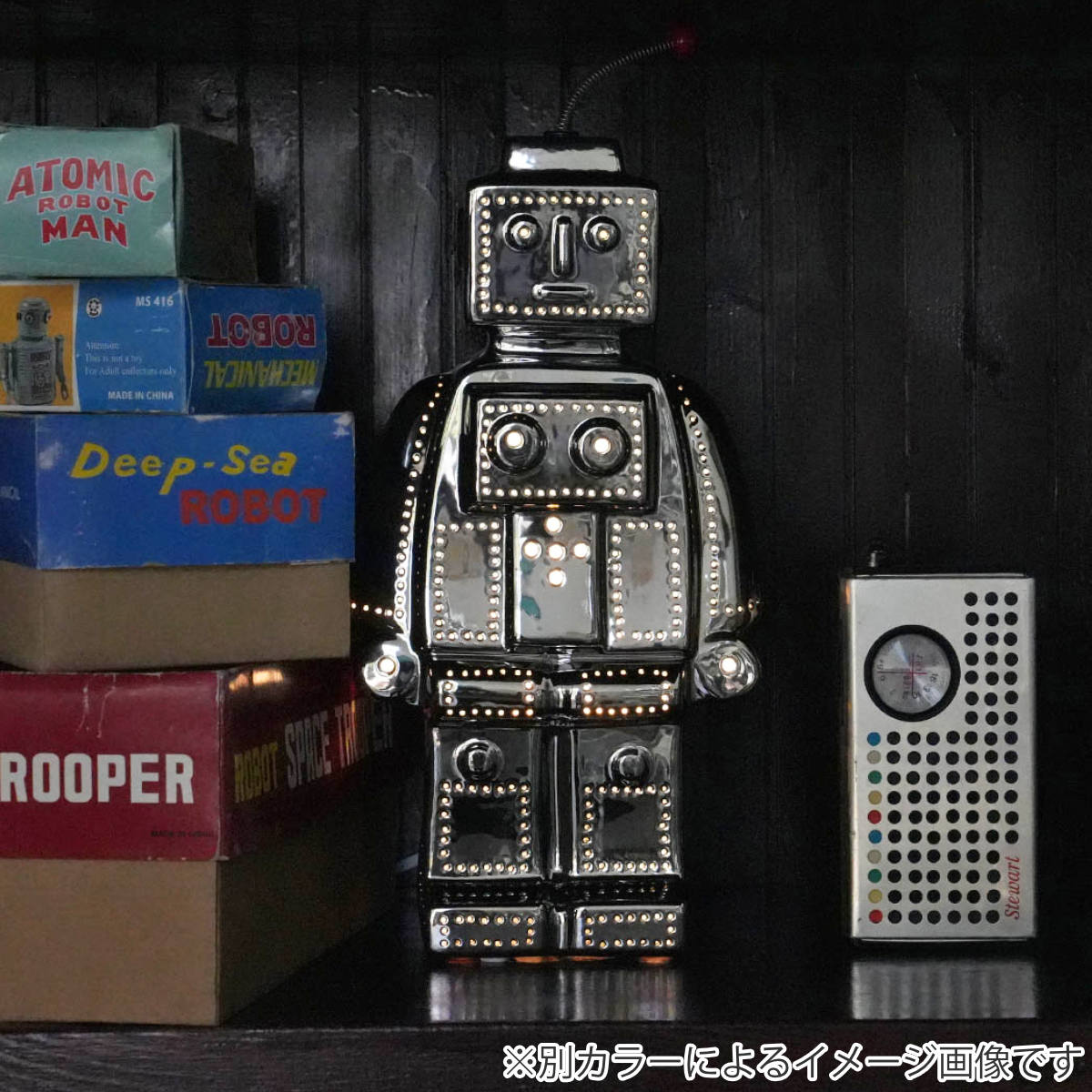 ロケットにロボット。子供の頃のおもちゃをモチーフにしたユーモラスなデザインは、置いておくだけでもインテリアに楽しいアクセントを与えてくれます。