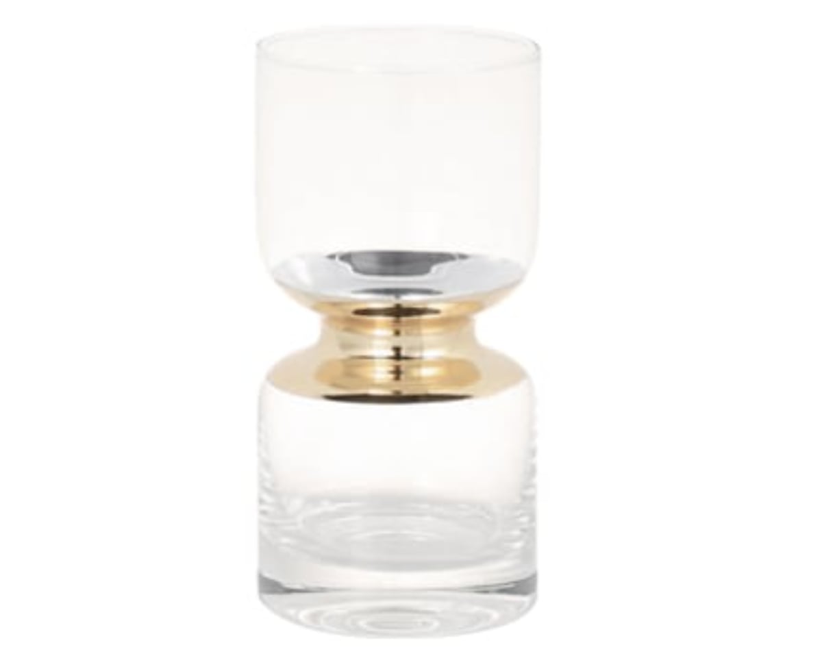 シェイプされた部分のカラーリングが、世にも素敵な錯覚をもたらす不思議なガラスベースです。まるで上下が仕切られているかの様なデザインですが、実はひと続きの花瓶。キャンドルをレイアウトしたり、水中花の様な雰囲気で遊んだり。と、水・キャンドル・花で、簡単に難易度の高い演出が楽しめます。