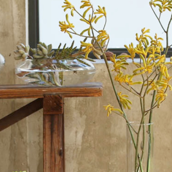 無色透明のガラスベースは植物の表情を引き出しながら雰囲気のあるインテリアとしてお部屋を彩ります。ショップ等ののディスプレイとしても様々なシチュエーションで活躍します。