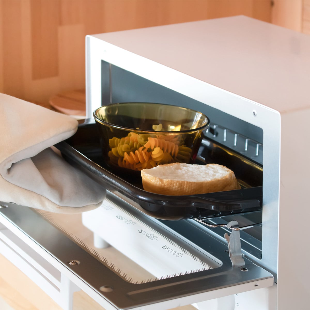 付属のバットは、オーブン調理にも使えるので、グリルプレートやトースタープレートとして幅広くお使いいただけます。油切りしたまま冷めた揚げ物をそのままオーブントースターで温め直すこともできます。