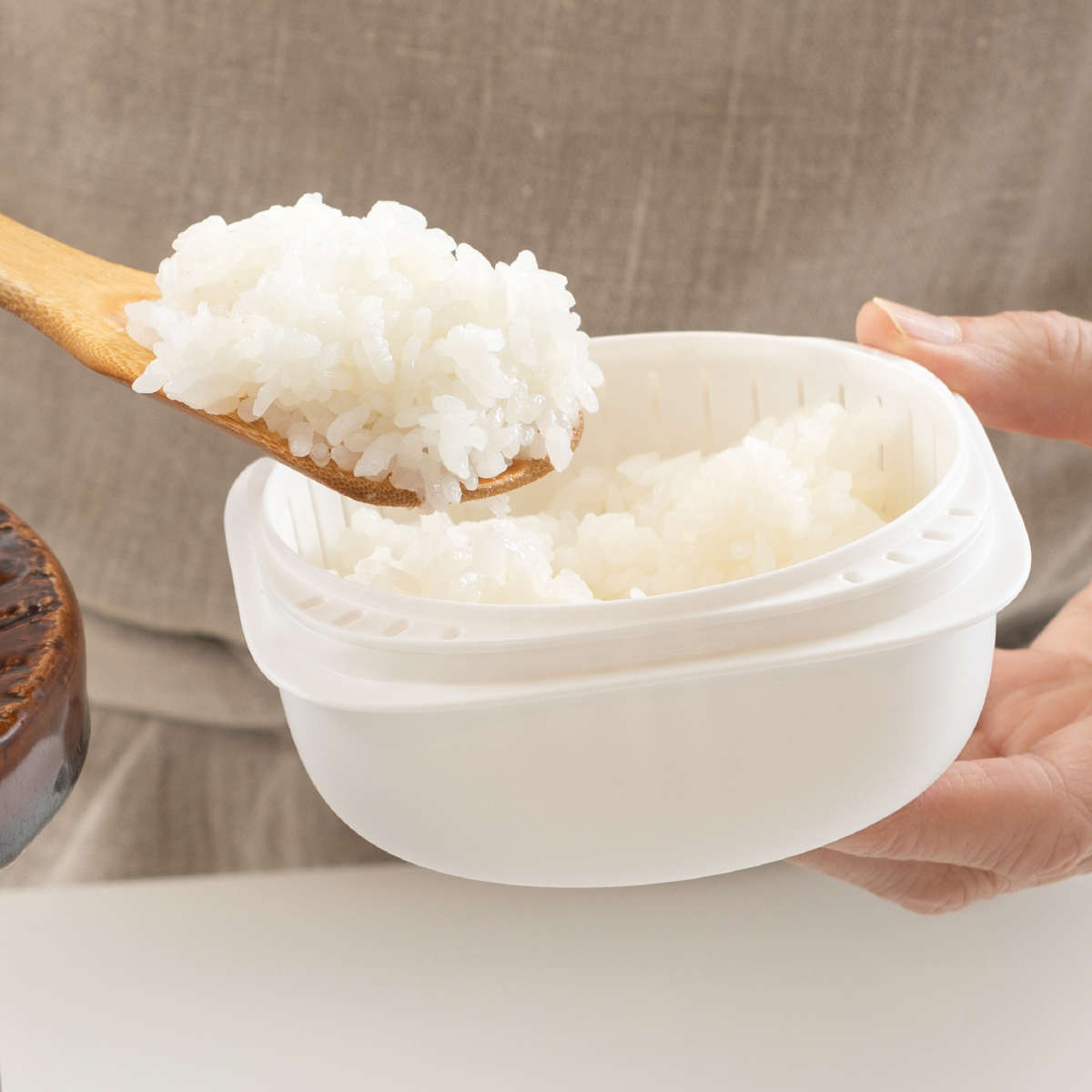 冷凍したごはんを美味しくふっくら解凍できるザル付き容器