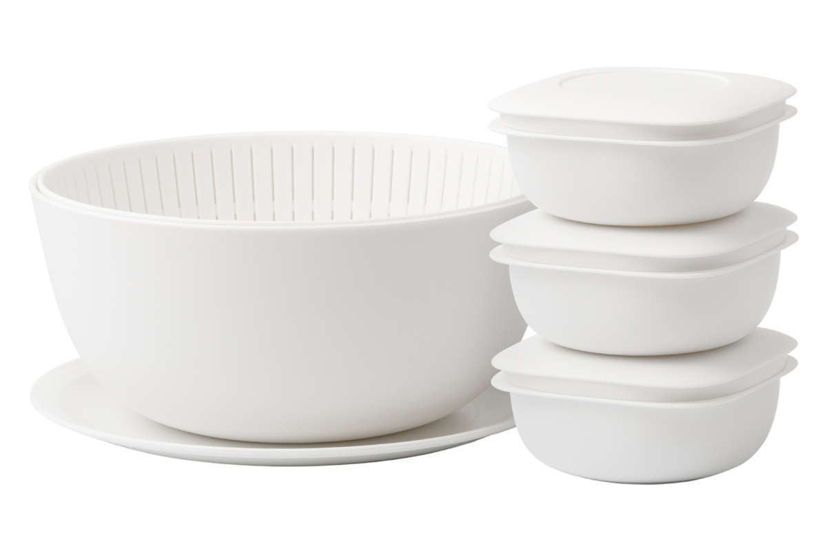 | サイズ | 冷凍ごはん容器:約 幅11.3×奥行11.3×高さ5.5(cm) ザル:約 直径22.7×高さ10.4(cm) ボウル:約 直径23.3×高さ10.7(cm) プレート:約 直径23.6×高さ1.6(cm) |