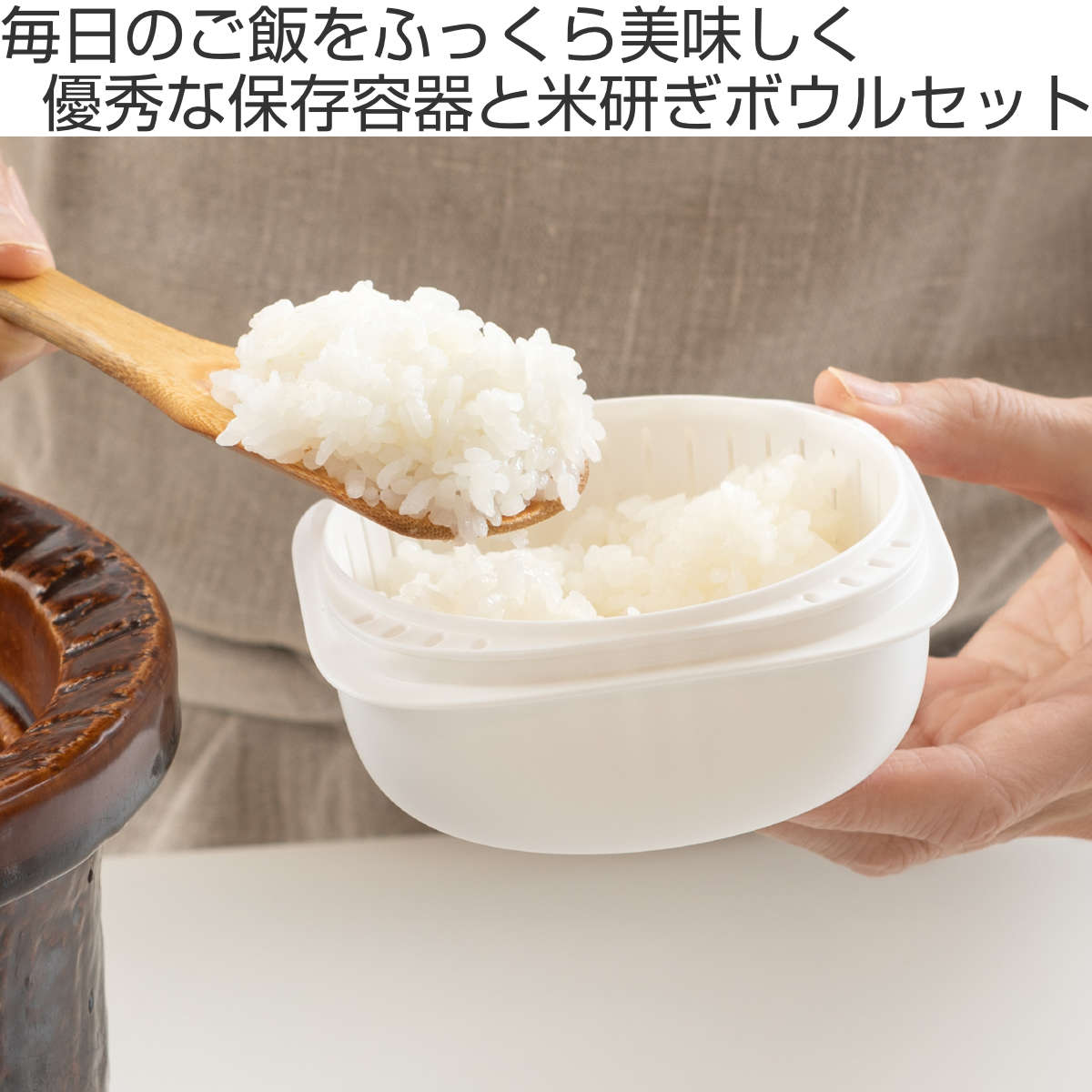 ごはんを美味しくふっくら解凍 冷凍ごはん容器と米研ぎボウルのセット