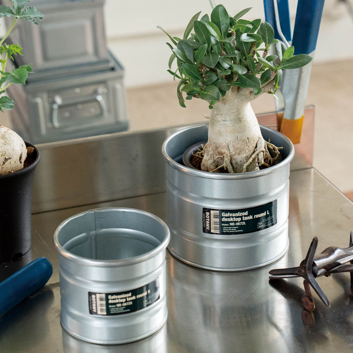 植物の樹形や葉色を存分に引き立てるガルバナイズドタンク