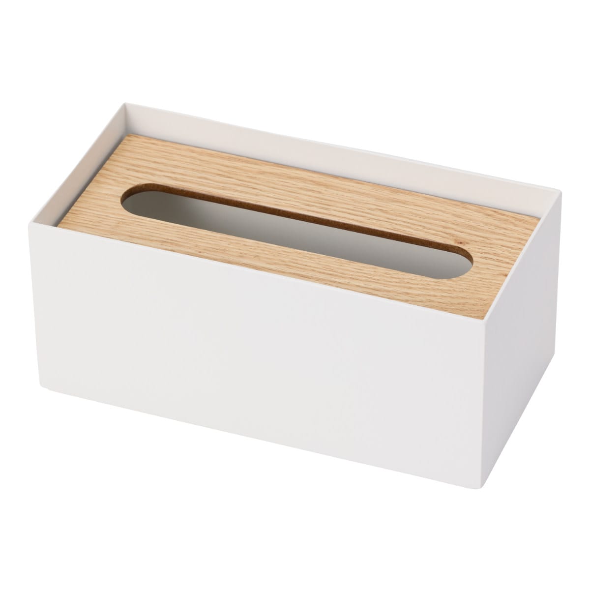 プラスチック素材と木蓋の異素材ミックスが目を引くティッシュケースです。天然木を使ったリバーシブル木蓋はインテリアに合わせて使い分けができます。天然木は木目の出方がそれぞれ異なるため、ひとつひとつ違った表情をお楽しみいただけます。