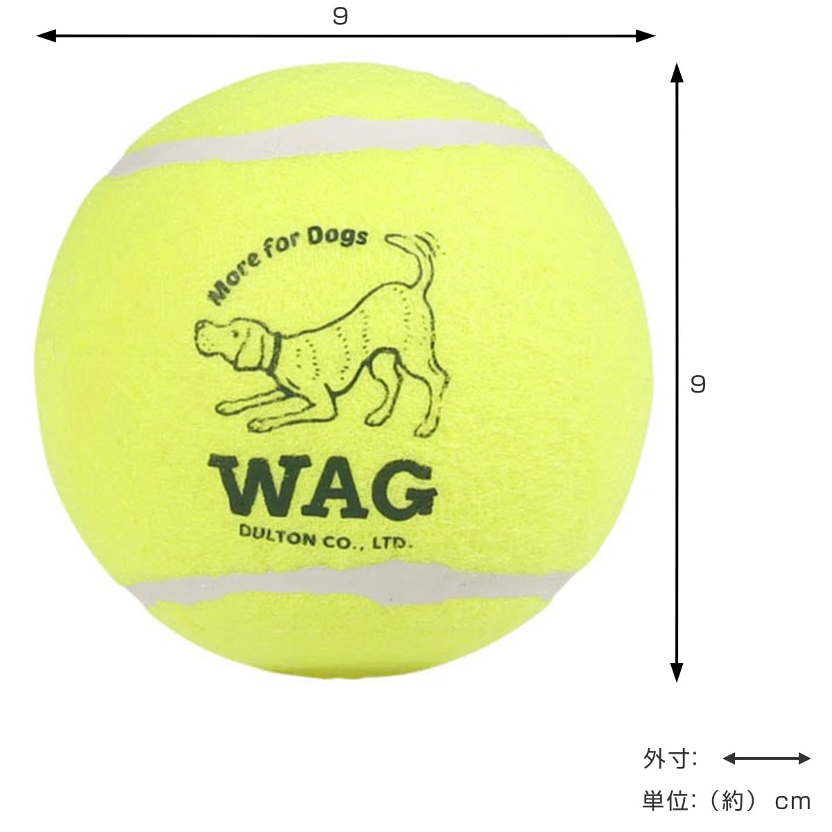 WAGのロゴ入り犬用テニスボール
