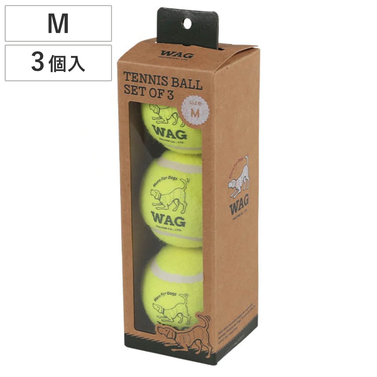 ボールを投げて、と言わんばかりの愛らしいWAGのロゴが入った犬用テニスボールです。家の中、ドッグラン、公園など、アクティブな愛犬と過ごす時間にピッタリです。