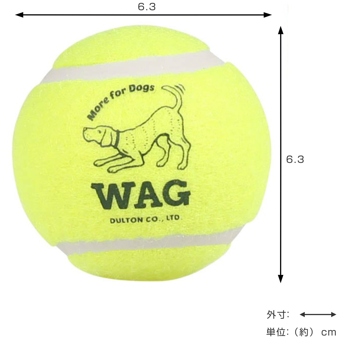 WAGのロゴ入り犬用テニスボール