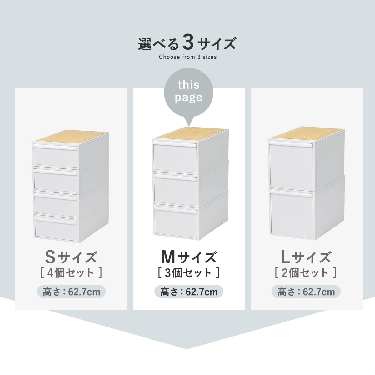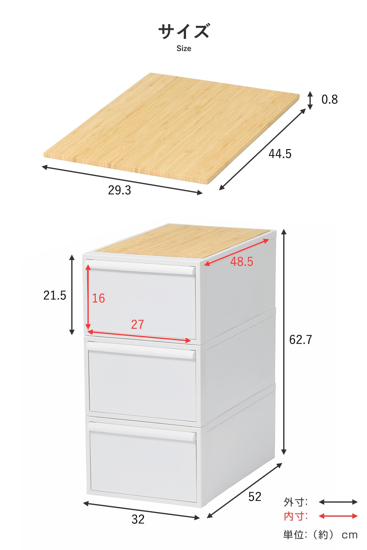| 内容量 | 引出し:同色3個 竹製天板:1枚 |
