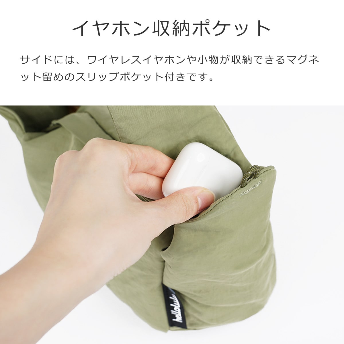 サイドには、ワイヤレスイヤホンや小物が収納できるマグネット留めのスリップポケット付きです。