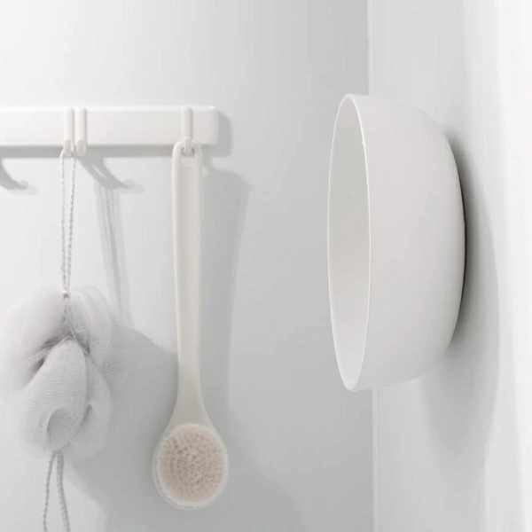浴室の壁面にピタッと付けて収納するマグネット湯桶です。湯桶の底面に磁石が付いています。浴室の壁は鋼板が入っている事が多く、磁石でくっつきます。壁面に収納することで浴室のスペースを有効に使えます。