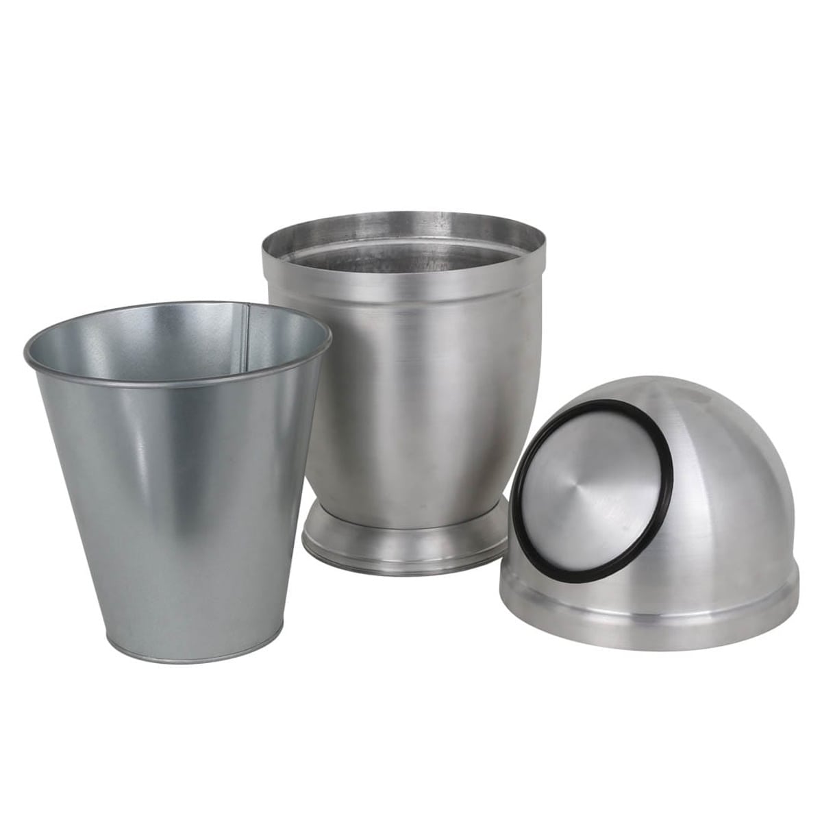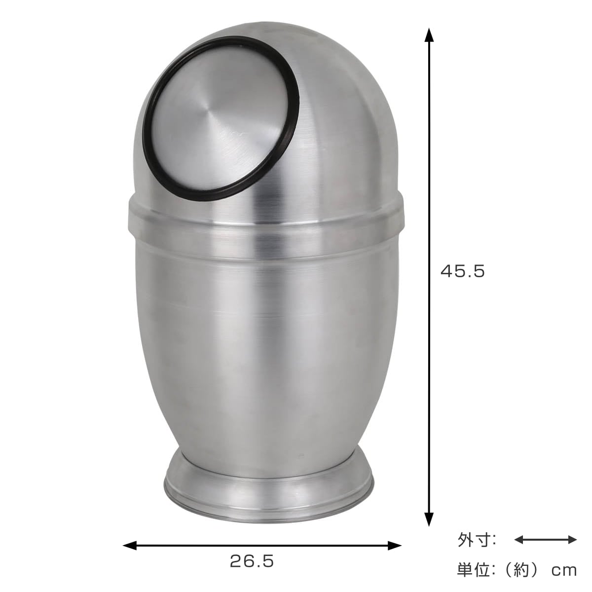型から研磨まで丹念に作り上げられたアルミ製のゴミ箱です。宇宙を思わせるメタリックボディに、ドーム型のフォルムが印象的です。インテリアの一部として、お部屋をおしゃれな空間にしてくれます。