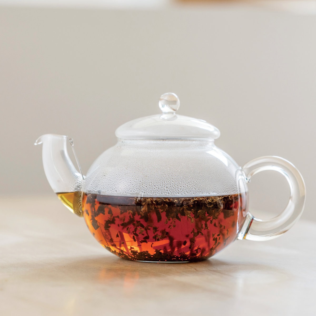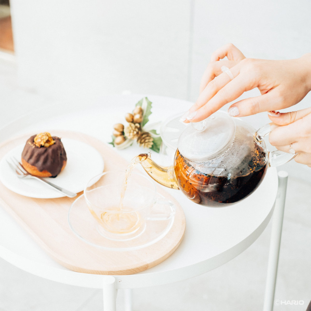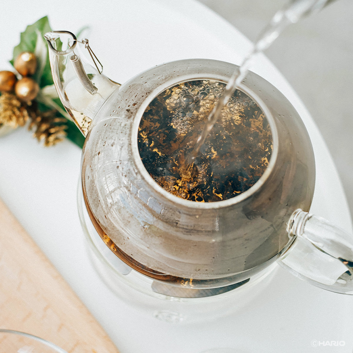 ポット本体がガラス製なので、茶葉が開く様子やドリンクの色をじっくりと眺めて愉しめます。フルーツティー、レモンティーや日本茶など、様々なドリンクに合わせやすいデザインです。