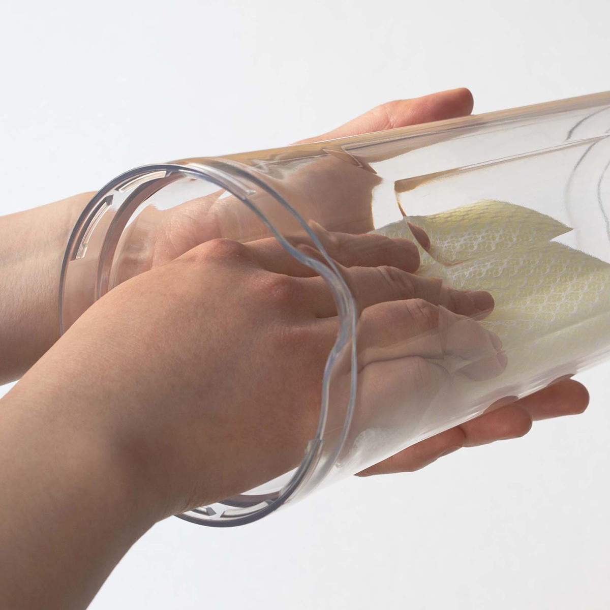 透明性が高く、強い耐衝撃性と耐熱性を備えたPCT樹脂(トライタン)を使用しています。ガラスのような美しさを保ちつつ、落としても割れにくく安心です。