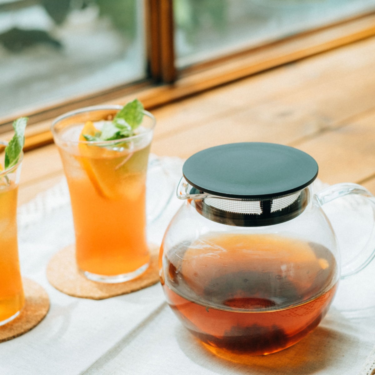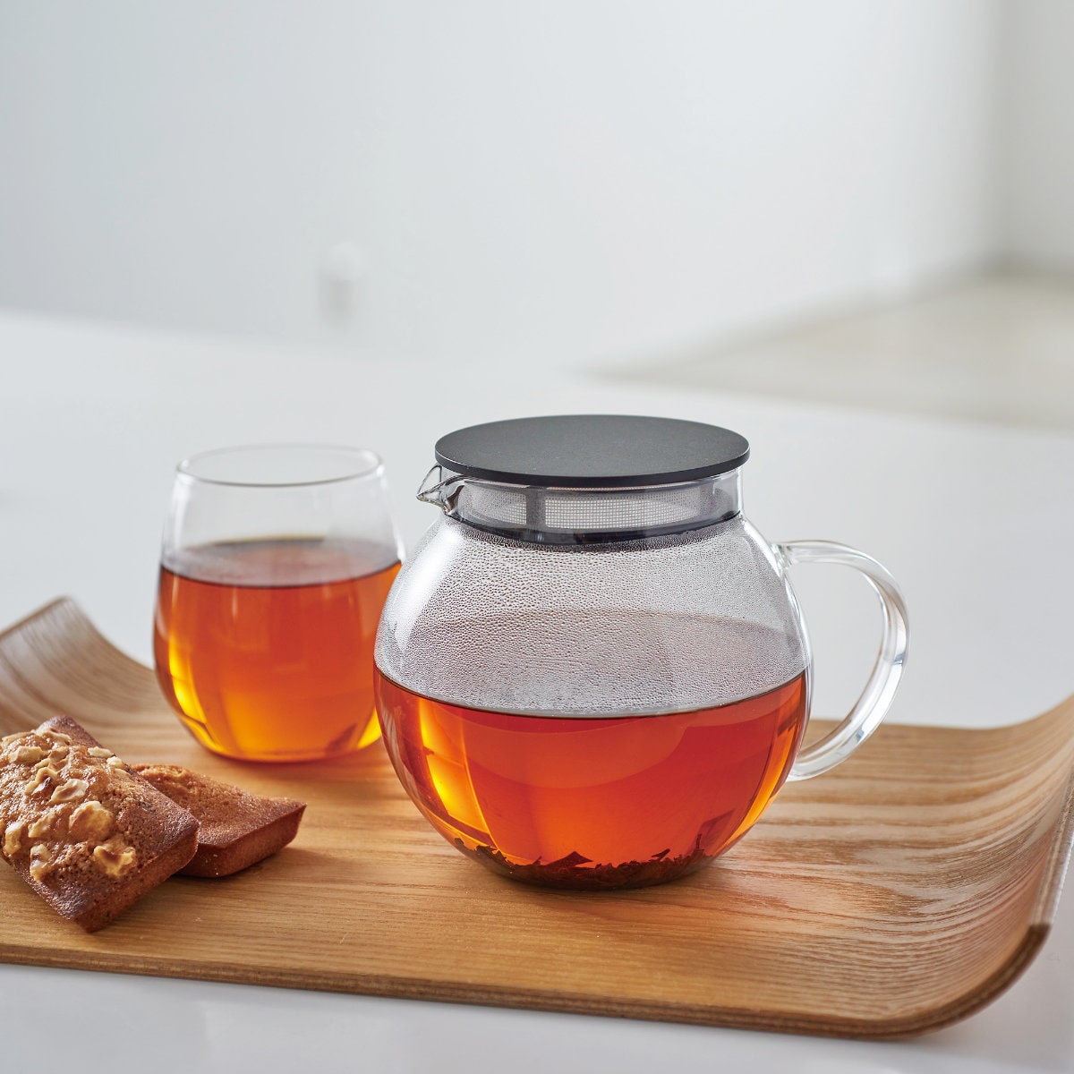 手軽に茶葉本来の美味しさを愉しめる丸い形状のティーポット600mlです。フタ部分が茶こしになっているので、しっかり茶葉が開きます。約3杯分を入れるのにちょうどいいサイズ感です。