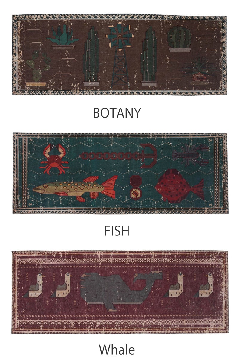 DULTONのブランド独自の世界観をモチーフにデザインされたマットです。くすんだ色合いに、かすれた柄・模様がビンテージの風合いを感じさせます。 落ち着いた色合いなので、空間に取り入れやすく、個性的な柄がアクセントになります。