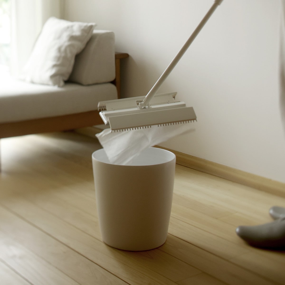 ポールのボタンを押しながらスライダーを下げるとフラップが開くので、掃除が終わったら汚れたシートに直接触れずにゴミ箱に捨てられます。