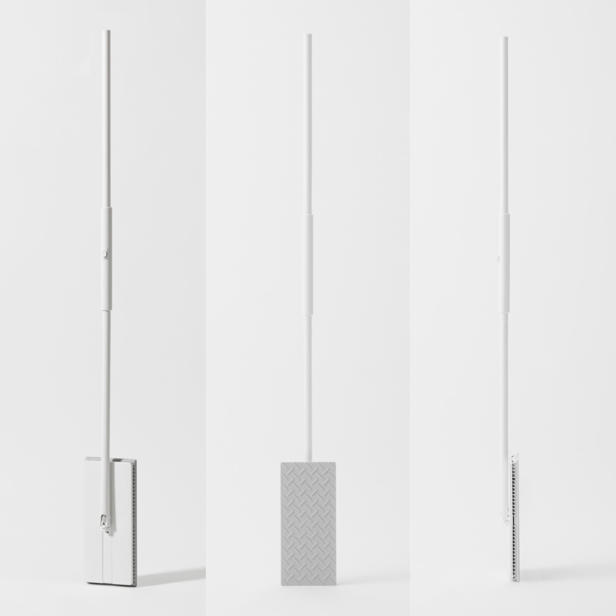 使わない時は、ヘッドを固定して壁に立てかけられます。すぐに使うことができるようお部屋のどこに立てかけても邪魔にならないデザインです。