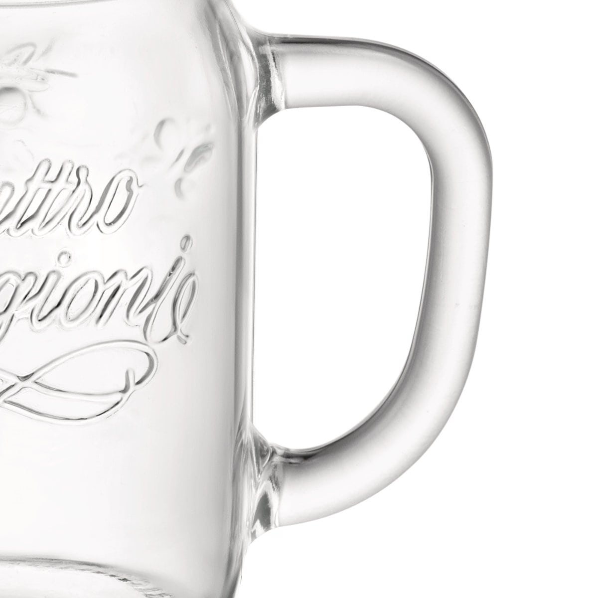 アイスコーヒーやフルーツジュース、ミルクティーなどのドリンクにぴったりのサイズです。厚みのある丈夫なガラスと持ちやすいハンドル付きで、カフェ気分を手軽に楽しめるアイテムです。