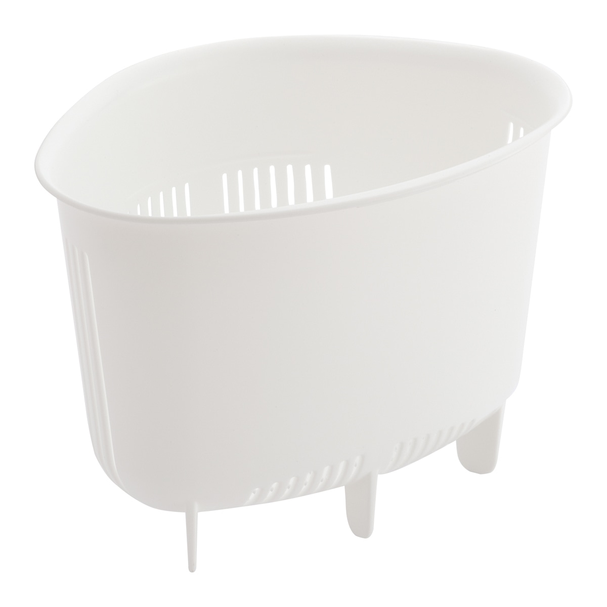 底面に足が付いているので直接シンクに接する事なく、しっかり水が切れて衛生的です。側面と底面に施されたスリットから水分が流れ出ます。