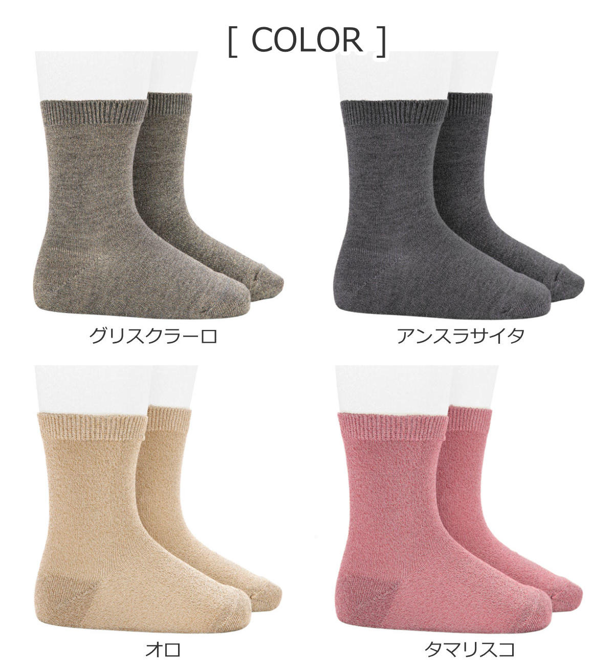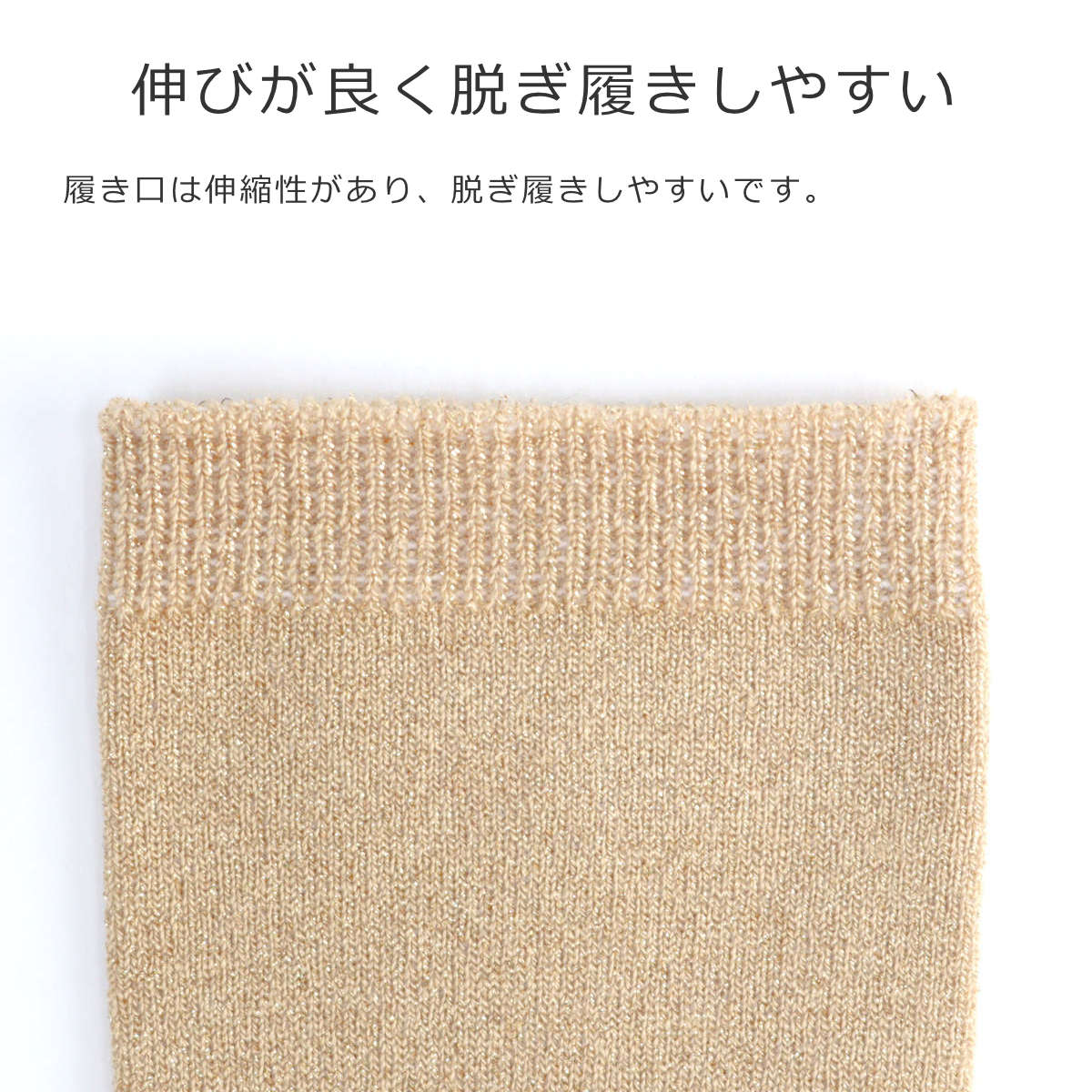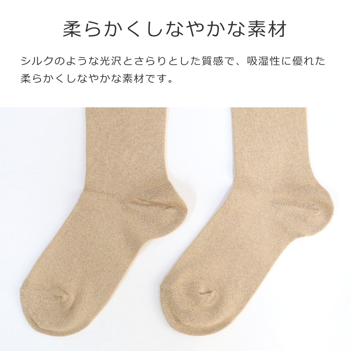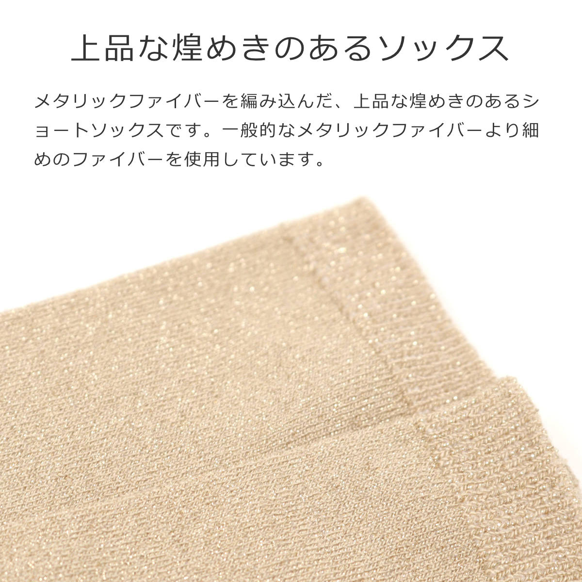 メタリックファイバーを編み込んだ、上品な煌めきのあるショートソックスです。一般的なメタリックファイバーより細めのファイバーを使用しています。