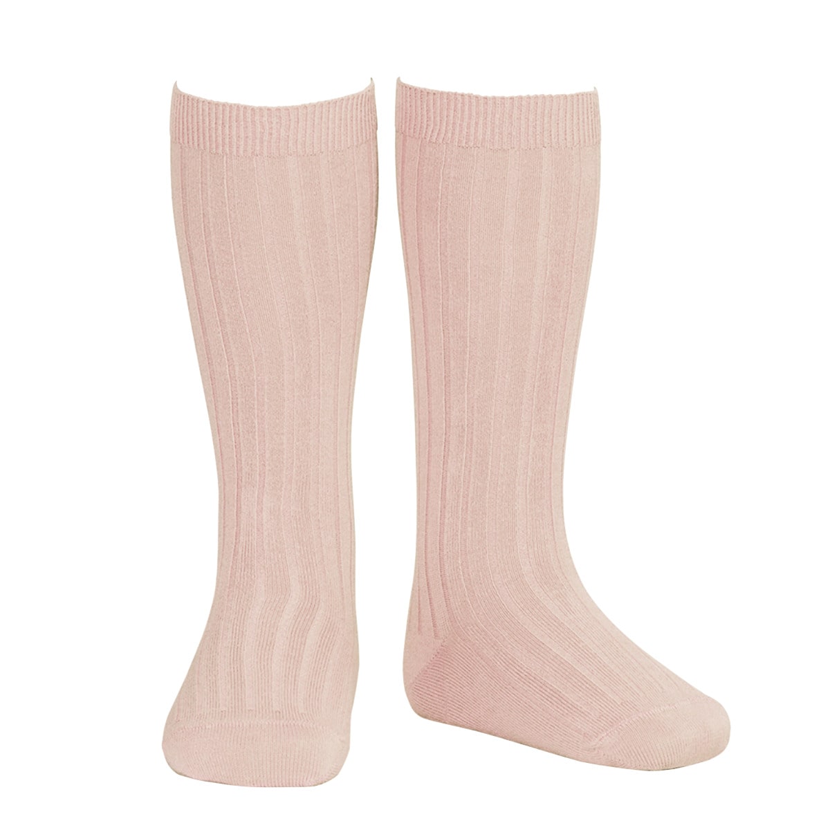 ■縦のラインが脚をスッキリ見せてくれるリブタイプのハイソックスです。