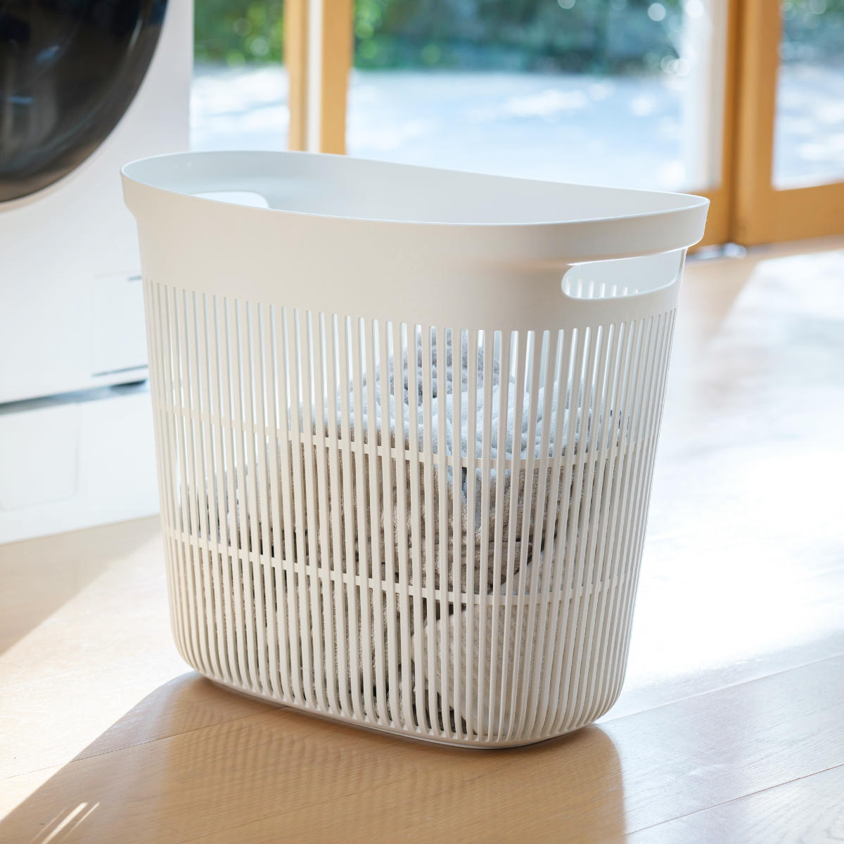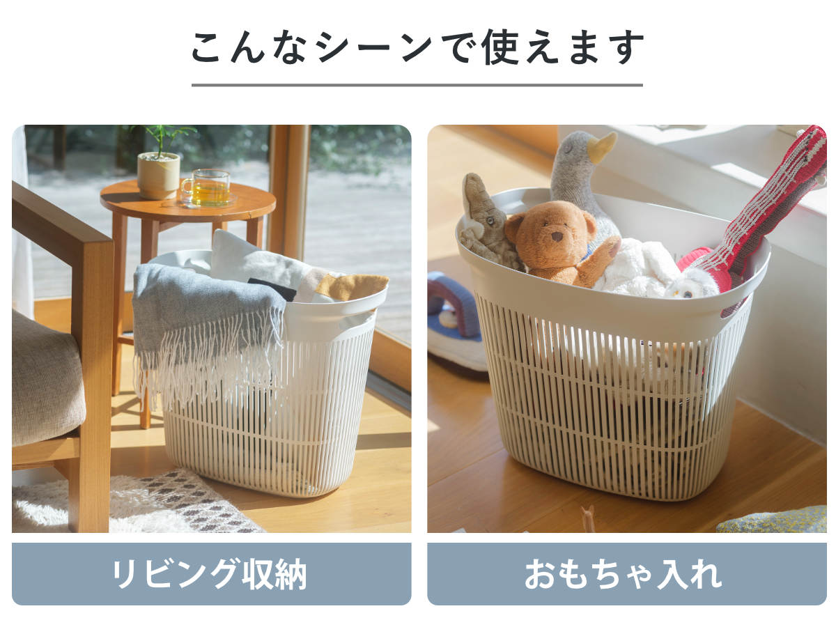 様々な空間と調和するので、ランドリールームだけではなくリビングでブランケットやクッションを収納したり、おもちゃ入れとして活用できます。