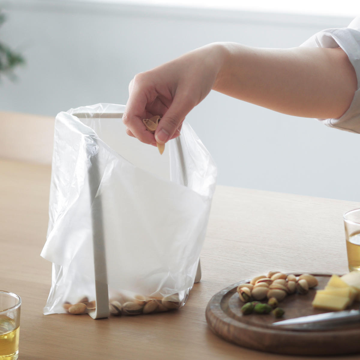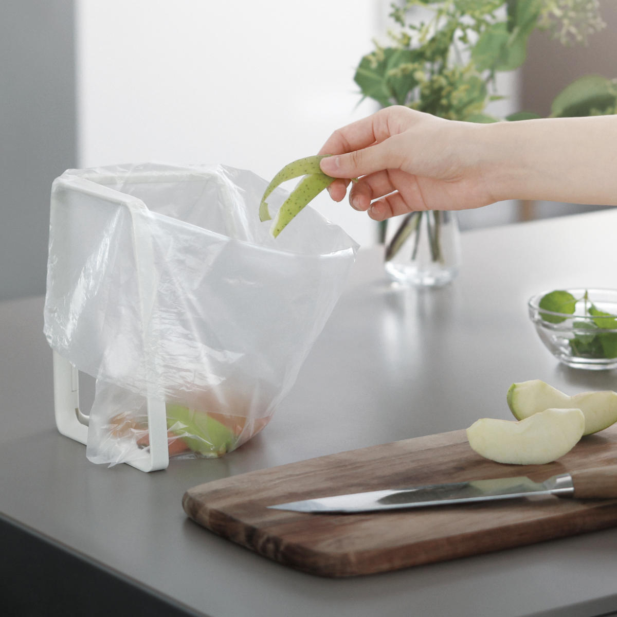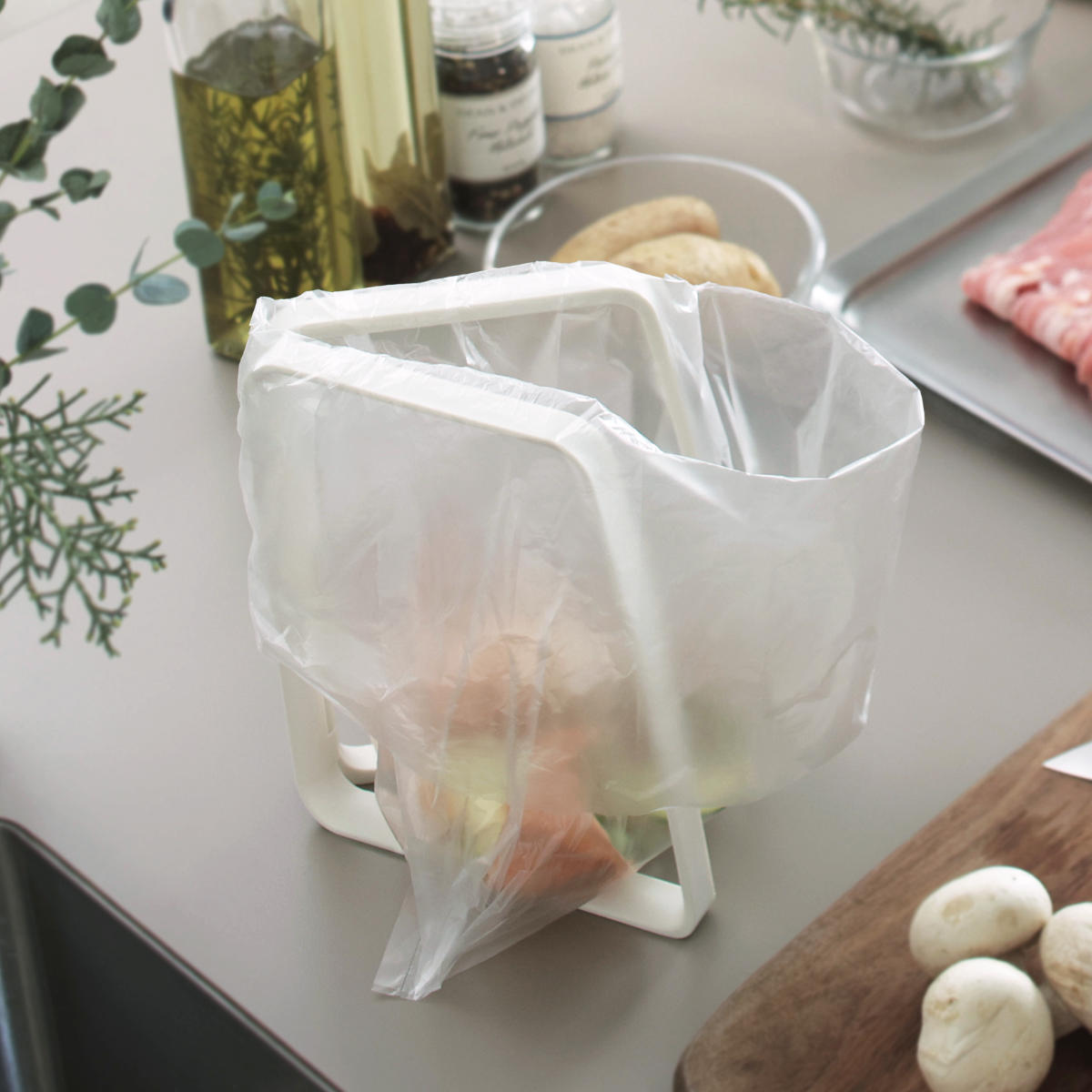 生ゴミ入れの他にも、袋調理の下準備や、作り置きを保存袋に移し替えるとき、食卓でのゴミの一時置きなど様々な用途に活用できます。