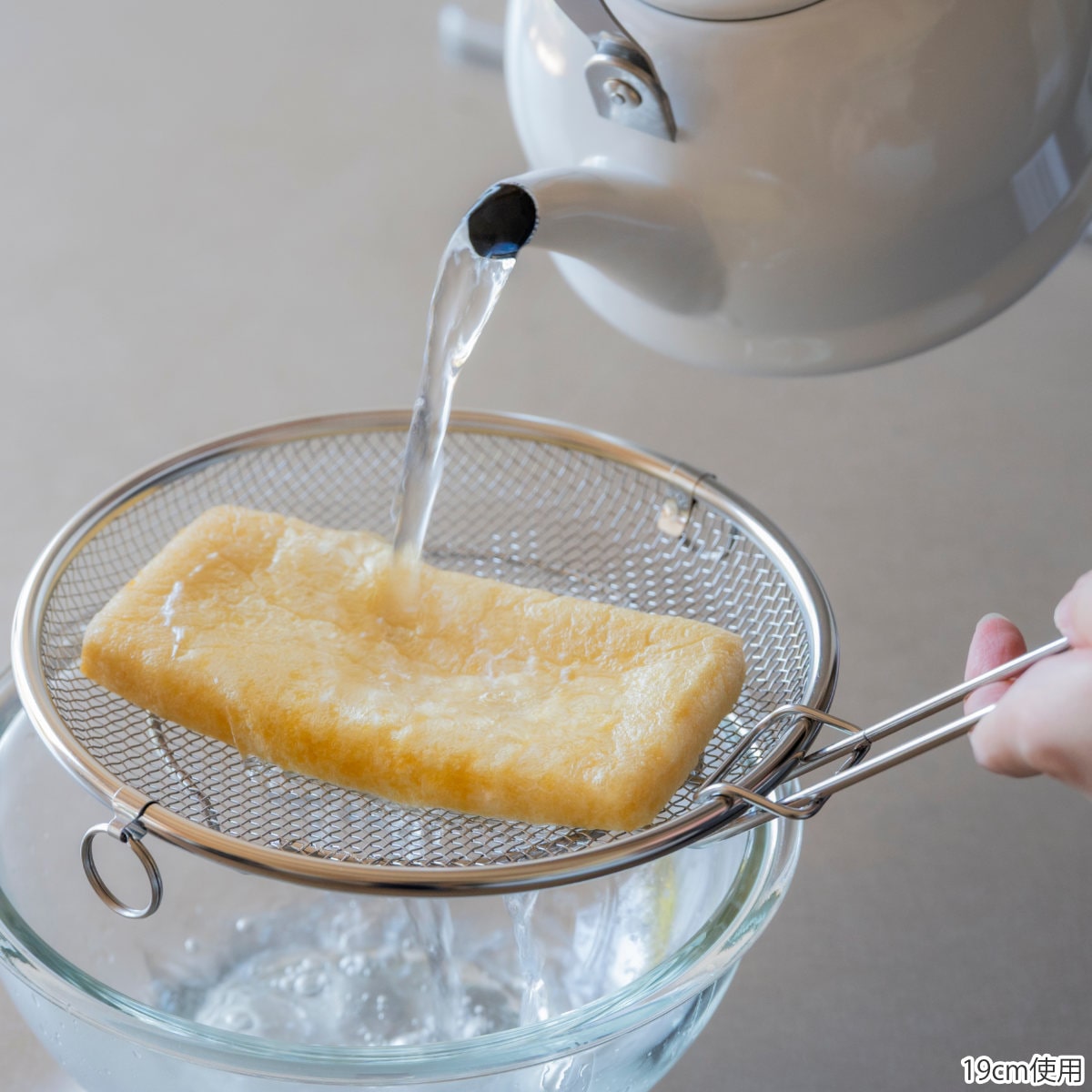 持ち上げ用のフックが付属しているので、熱くなった盆ざるも安心して取り出せます。食材を移す際も、手を汚さずにざるごと移動できるので便利です。