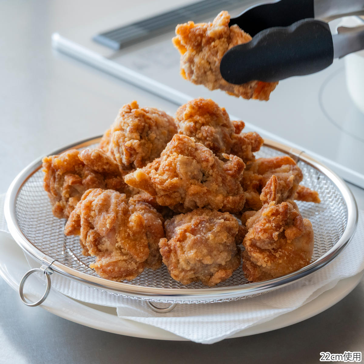 揚げ物や麺料理、鍋料理などさまざまな用途でお使いいただける盆ざるは、取っ手のないシンプルなデザインで調理後そのまま食卓に出しても邪魔になりません。